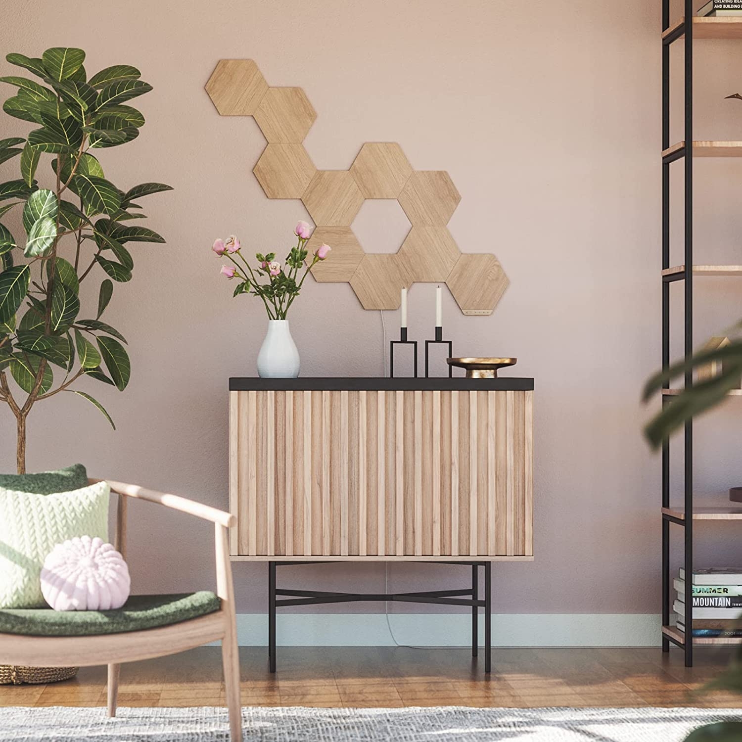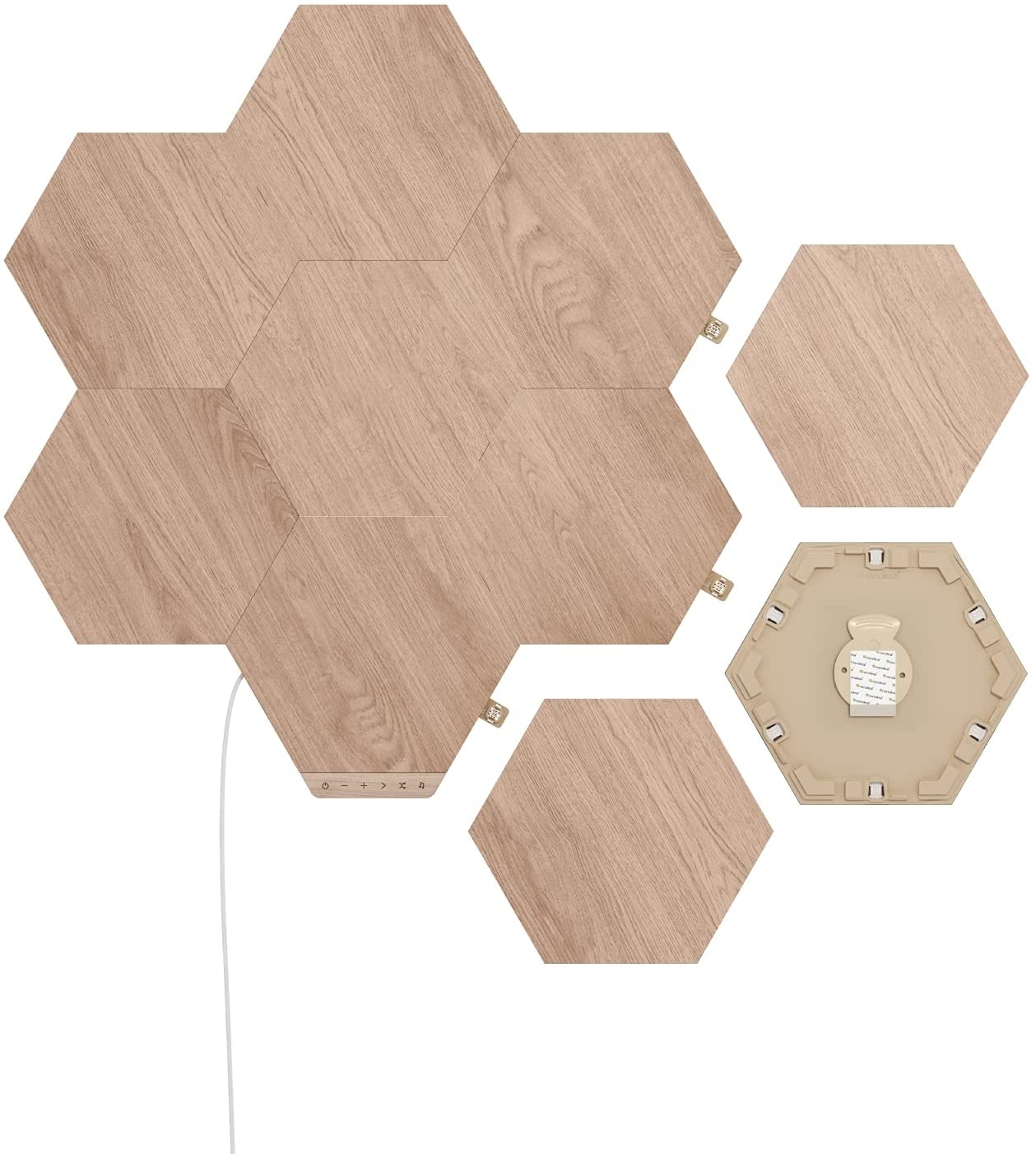 Σχεδιάστε την προσωπική σας όαση με τα Elements Wood Look Hexagons της Nanoleaf. Τα πάνελ με όψη ξύλου έχουν σχεδιαστεί για να προσθέτουν μια κομψή και φυσική αίσθηση στο σπίτι σας. Επιλέξτε από μια σειρά επιλογών ζεστού έως ψυχρού φωτισμού για να φωτίσετε το χώρο σας. Φτιαγμένα για να δείχνουν όμορφα είτε είναι σε λειτουργία είτε όχι.