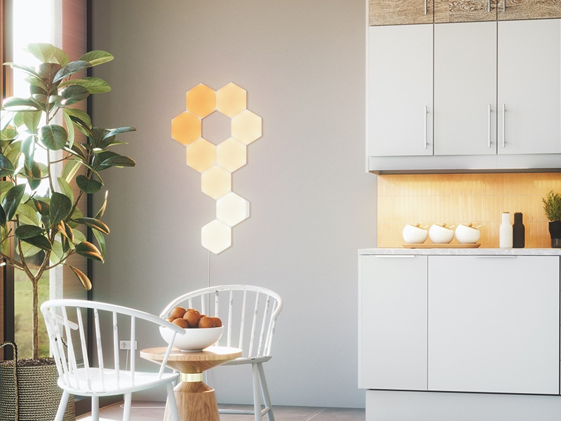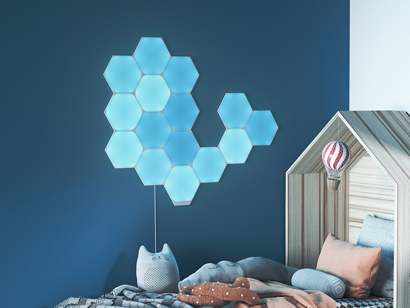 Τα πλακίδια Nanoleaf Shapes Hexagons χρησιμοποιούν την πλέον σύγχρονη τεχνολογία LED και συνδέονται μηχανικά και ηλεκτρικά μεταξύ τους (κάνουν χρήση αρθρωτής σχεδίασης) συνθέτοντας διάφορα σχήματα που μεταμορφώνουν κάθε χώρο. Αν και μπορείς να ελέγξεις τη λειτουργία τους από το κινητό σου (επιλέγοντας τη θερμοκρασία του ψυχρού λευκού φωτός από 1.200K έως 6.500K καθώς και το χρώμα από περισσότερα από 16 εκατομμύρια επιλογές).