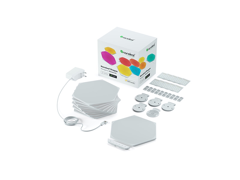 Η συσκευασία περιλαμβάνει: 1 x Τροφοδοτικό, 1 x Οδηγός γρήγορης εκκίνησης, 9 x άκαμπτοι σύνδεσμοι για σχήματα Nanoleaf, 9 x Nanoleaf Shapes Hexagons, 1x Controller Nanoleaf Shapes.