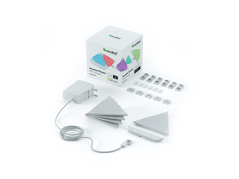Τα πλακίδια Nanoleaf Shapes Mini Triangles χρησιμοποιούν την πλέον σύγχρονη τεχνολογία LED και συνδέονται μηχανικά και ηλεκτρικά μεταξύ τους (κάνουν χρήση αρθρωτής σχεδίασης) συνθέτοντας διάφορα σχήματα που μεταμορφώνουν κάθε χώρο. Αν και μπορείς να ελέγξεις τη λειτουργία τους από το κινητό σου (επιλέγοντας τη θερμοκρασία του ψυχρού λευκού φωτός από 1.200K έως 6.500K καθώς και το χρώμα από περισσότερα από 16 εκατομμύρια επιλογές).