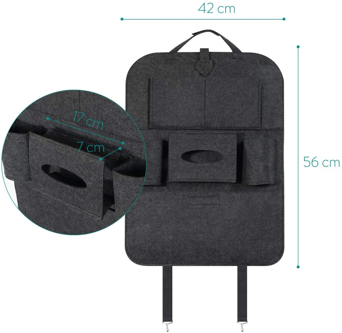 Το υλικό της θήκης είναι ανθεκτικό, δεν παραμορφώνεται και προστατεύει την πλάτη του μπροστινού καθίσματος. Χάρη στον οργανωτή, το αυτοκίνητο σας θα είναι πάντα οργανωμένο!