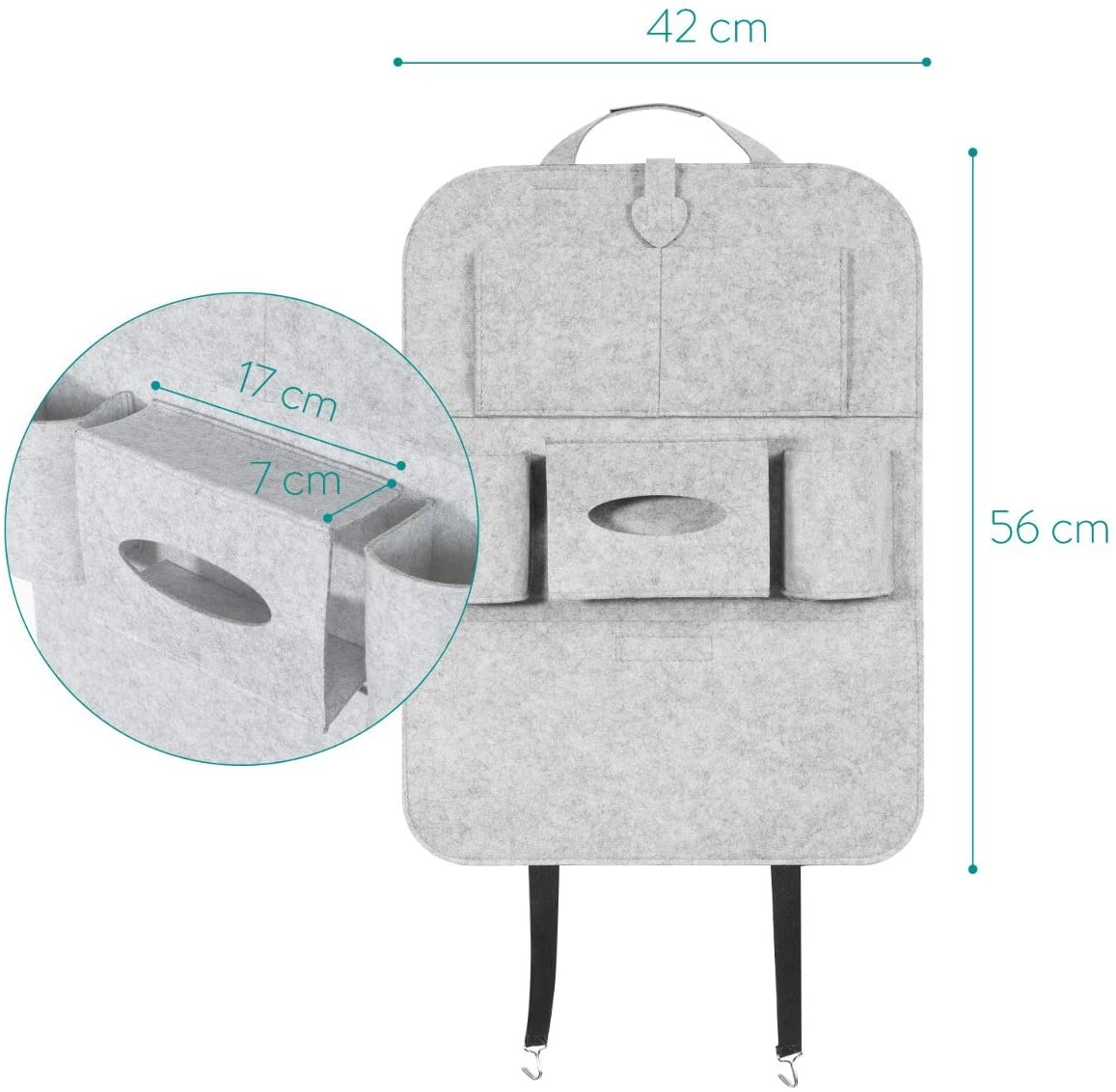 Το υλικό της θήκης είναι ανθεκτικό, δεν παραμορφώνεται και προστατεύει την πλάτη του μπροστινού καθίσματος. Χάρη στον οργανωτή, το αυτοκίνητο σας θα είναι πάντα οργανωμένο!