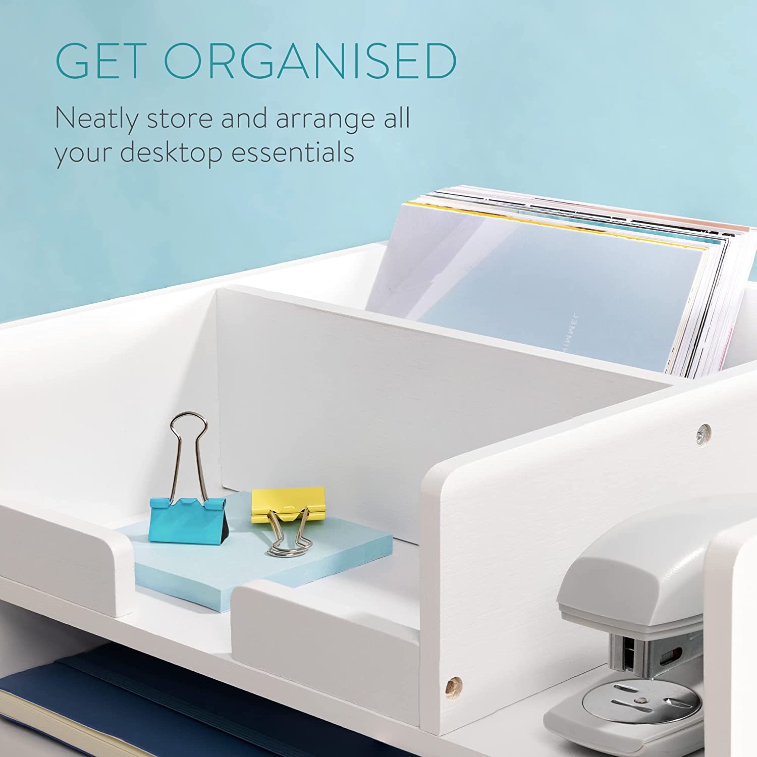 Navaris Bamboo Desk Organizer - Ξύλινο Ράφι Οργάνωσης από Μπαμπού - 33 x 24 x 26 cm - White (52359.01.02)