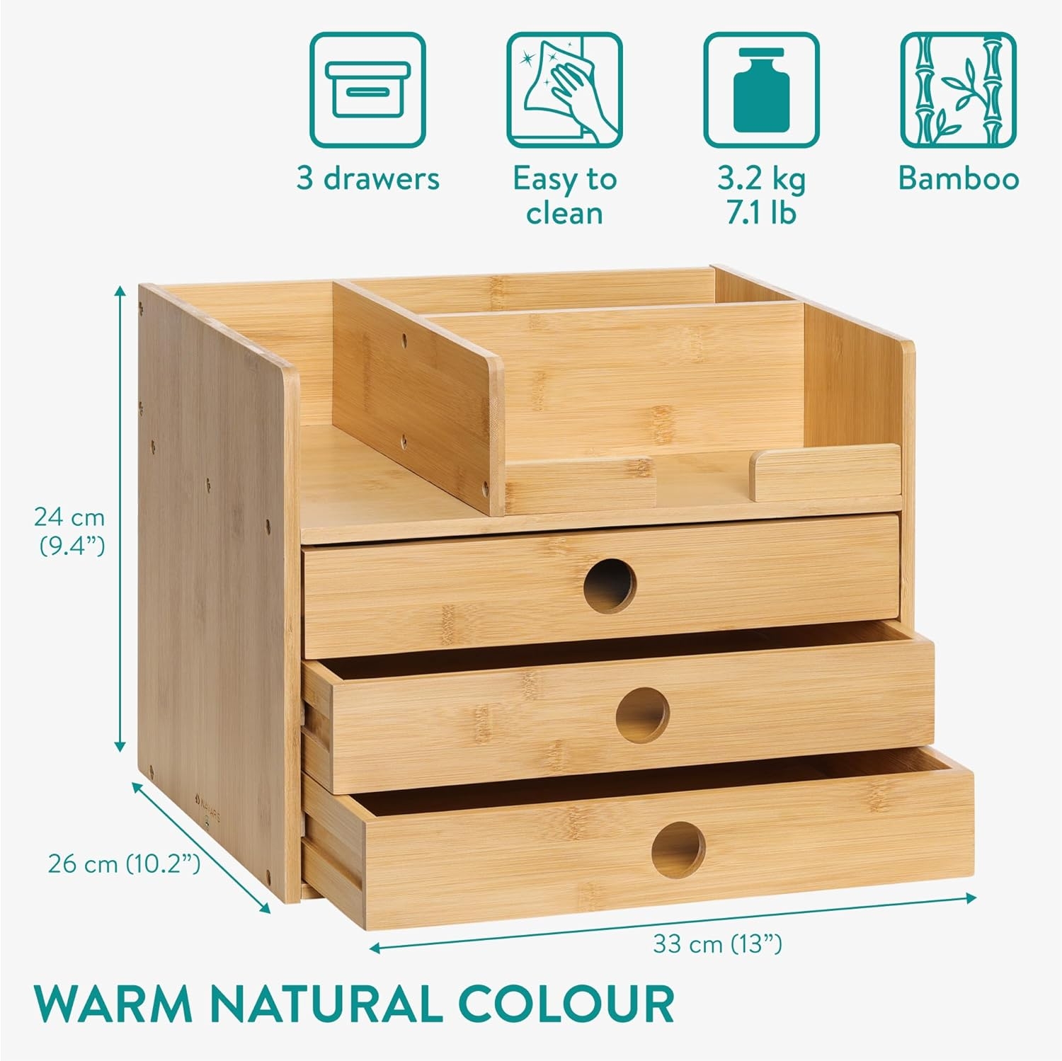 • Ράφι / Βάση Οργάνωσης Γραφείου από Μπαμπού με 3 Συρτάρια από την Navaris