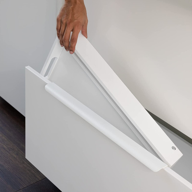 Ξεδιπλώστε τον δίσκο και μπορείτε να απολαύσετε ροφήματα και φαγητό, ενώ διαβάζετε ή παρακολουθείτε ταινία στο tablet σας. Οι δύο λαβές σε κάθε πλευρά σας επιτρέπουν να μετακινείτε τον δίσκο εύκολα και σταθερά ενώ ταυτόχρονα, οι υπερυψωμένες άκρες εμποδίζουν τα ποτήρια και τα πιάτα από το να γλιστρήσουν και να πέσουν.