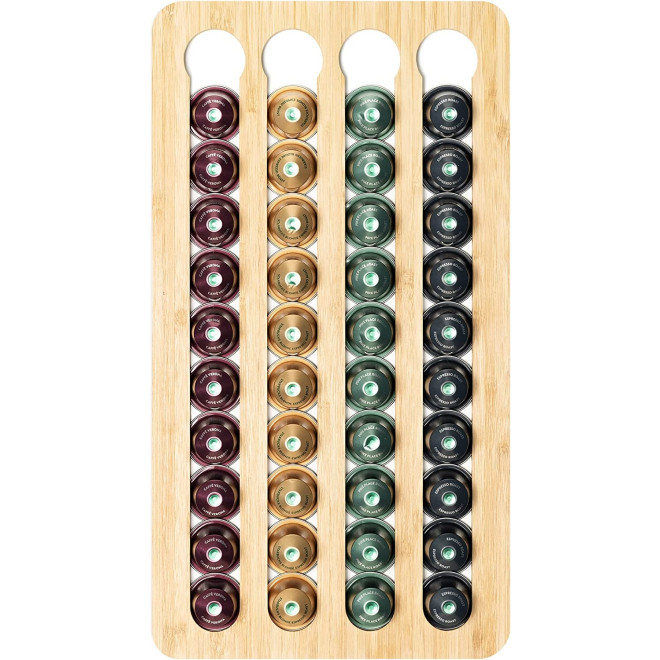 Σας δίνει την δυνατότητα να έχετε τις κάψουλες Nespresso σε ένα μέρος αποθηκευμένες και ορατές για εύκολη πρόσβαση και επιλογή. Αποθηκεύει έως και 40 κάψουλες και έχει 4 ξεχωριστές στήλες. Είναι κατασκευασμένη από γνήσιο μπαμπού, προσφέροντάς σας ανθεκτικότητα στην πάροδο του χρόνου.