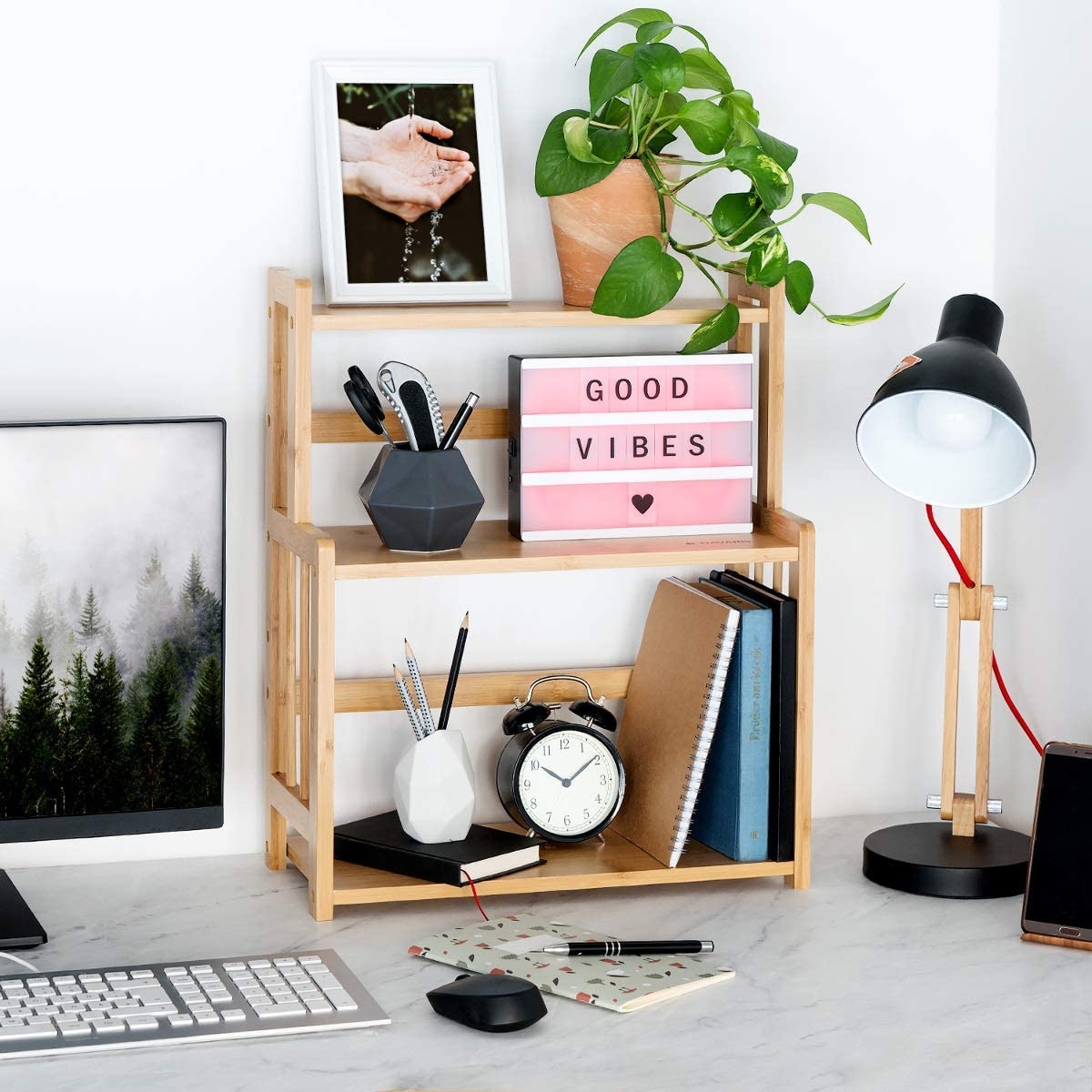 Με αυτό το ράφι από μπαμπού το οποίο είναι φιλικό προς το περιβάλλον, συμβάλλετε σε ένα πιο βιώσιμο μέλλον για τον πλανήτη επιλέγοντας να μην αγοράσετε μια επιβλαβή πλαστική εναλλακτική λύση.