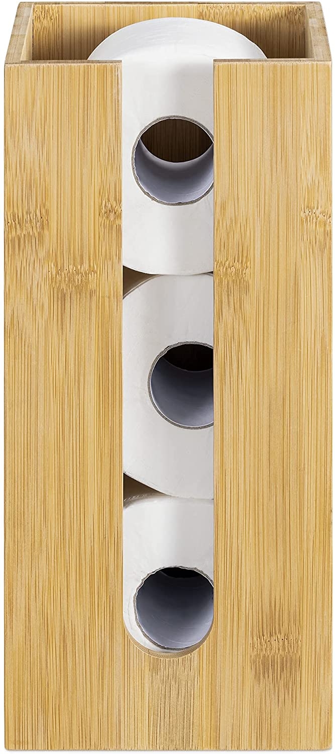 Τοποθετήστε αυτή την κομψή χαρτοθήκη δαπέδου από μπαμπού της Navaris στο μπάνιο σας, ώστε να μπορείτε να αποθηκεύετε το χαρτί σας εύκολα και πρακτικά! Η συγκεκριμένη χαρτοθήκη προσφέρει χώρο αποθήκευσης για εώς και 3 χάρτινα ρολά.