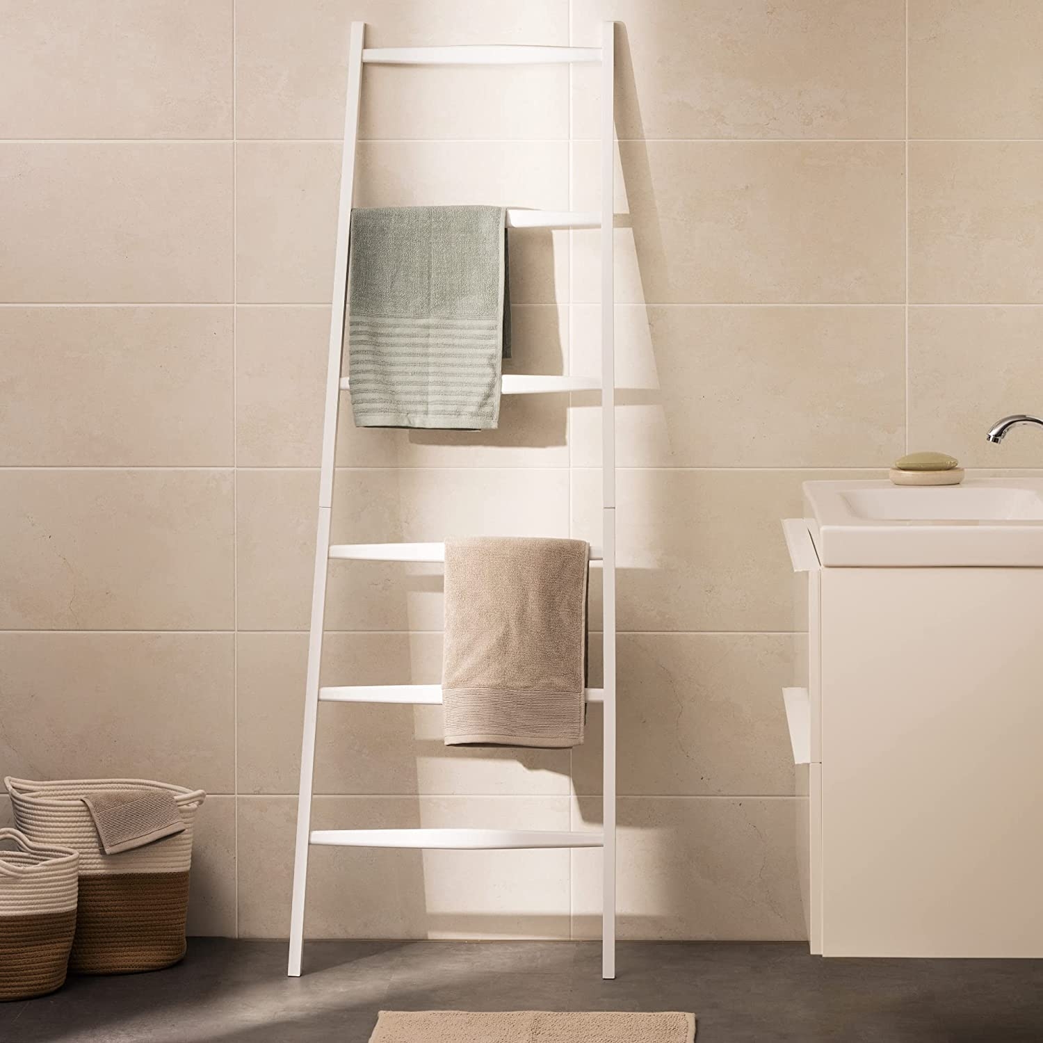 Με αυτήν τη σκάλα, δεν υπάρχουν πια δικαιολογίες για να αφήσετε τις χρησιμοποιημένες πετσέτες στο πάτωμα ή να πετάτε ρούχα στην κρεβατοκάμαρα. Σας προσφέρει άφθονο χώρο, για να στεγνώσετε τις πετσέτες σας, και όχι μόνο!
