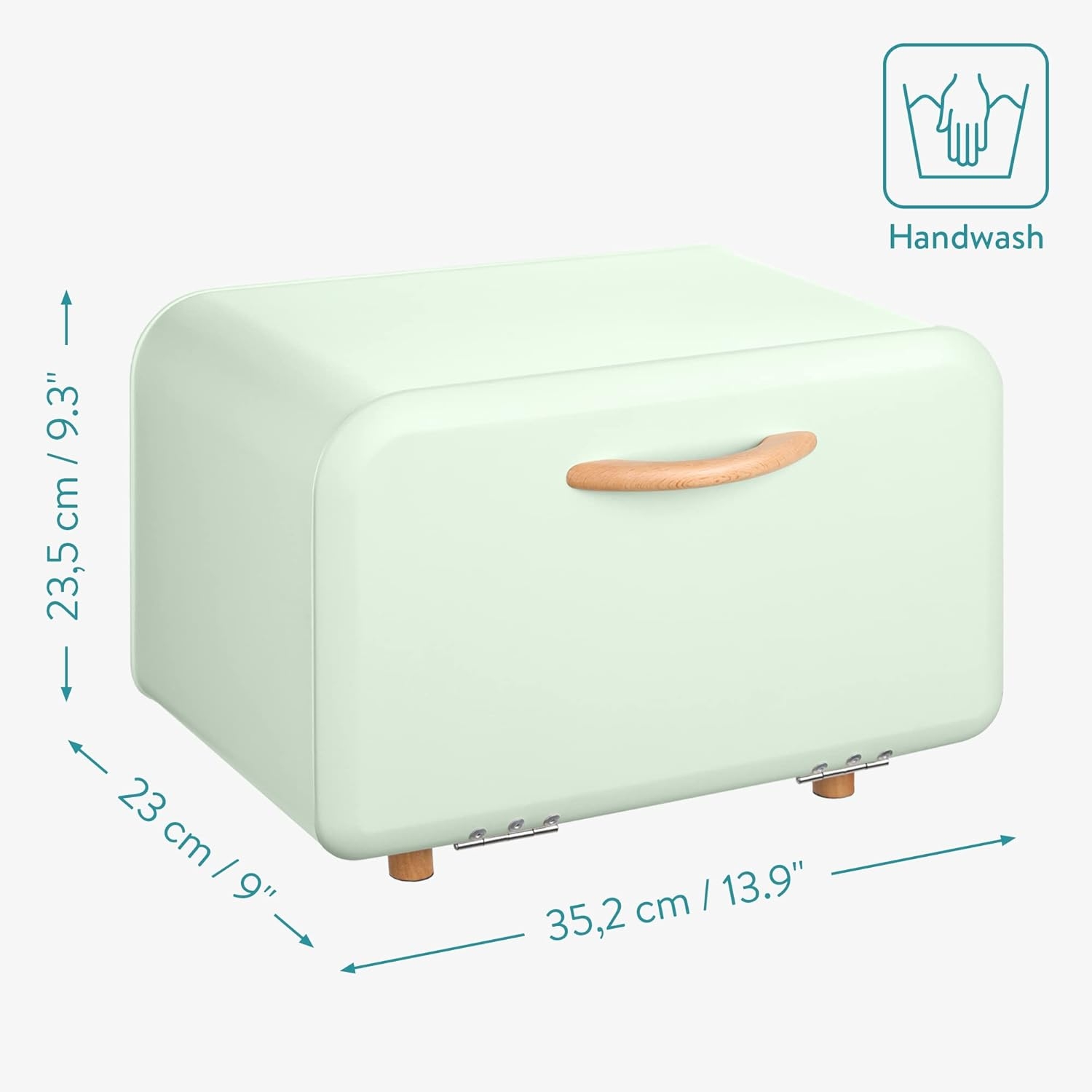 Στο κάτω μέρος της ψωμιέρας, υπάρχουν αντιολισθητικά πόδια, που προστατεύουν τον πάγκο της κουζίνας ή την επιφάνεια εργασίας σας από γρατζουνιές, αλλά βοηθούν επίσης στη διατήρηση της καλής κατάστασης των ποδιών, λειτουργώντας ως φράγμα μεταξύ των ποδιών και του πάγκου. Η λαβή και τα πόδια από ξύλο οξιάς προσθέτουν την τελευταία πινελιά σε αυτό το κομψά σχεδιασμένο κουτί ψωμιού!