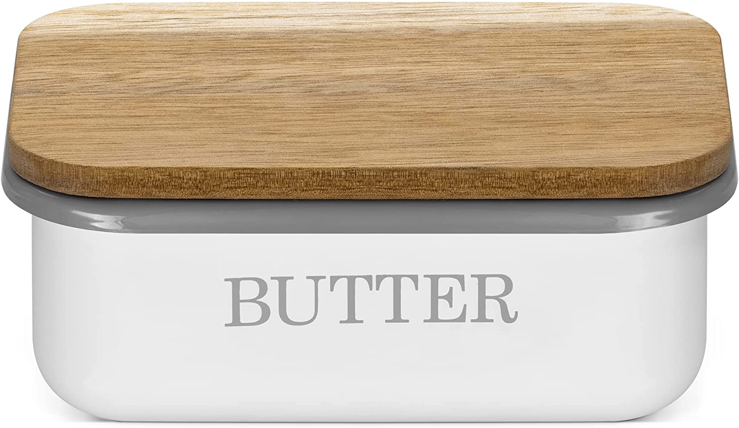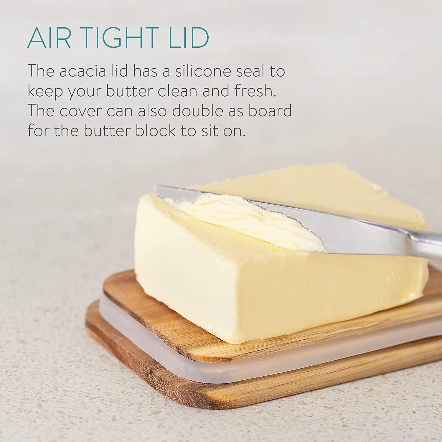 Κρατήστε το βούτυρο σας καθαρό και φρέσκο! Βάλτε τέλος στα δοχεία από πλαστικό με το δοχείο αποθήκευσης βουτύρου της Navaris το οποίο είναι κατασκευασμένο από μέταλλο και ξύλο ακακίας, δύο υλικά υψηλής ποιότητας που θα κρατήσουν το βούτυρο φρέσκο ανά πάσα στιγμή.