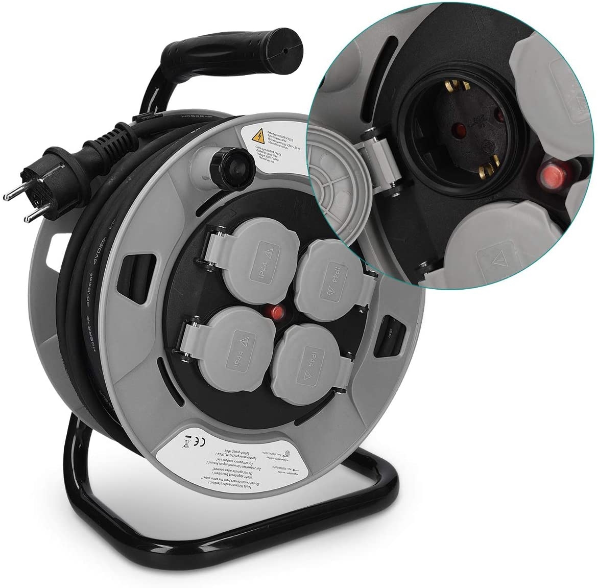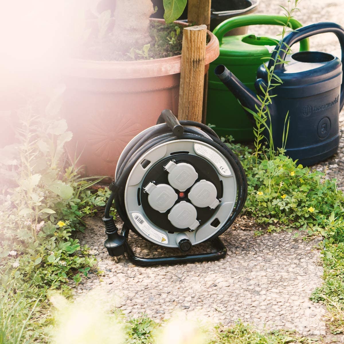 Τα καπάκια των 4 υποδοχών κλείνουν μόνα τους όταν δεν χρησιμοποιούνται. Χάρη στις συμπαγείς διαστάσεις, ο κύλινδρος καλωδίου μπορεί επίσης να αποθηκευτεί εύκολα όταν δεν χρησιμοποιείται, ενώ το καλώδιο τυλίγεται εύκολα με μανιβέλα.