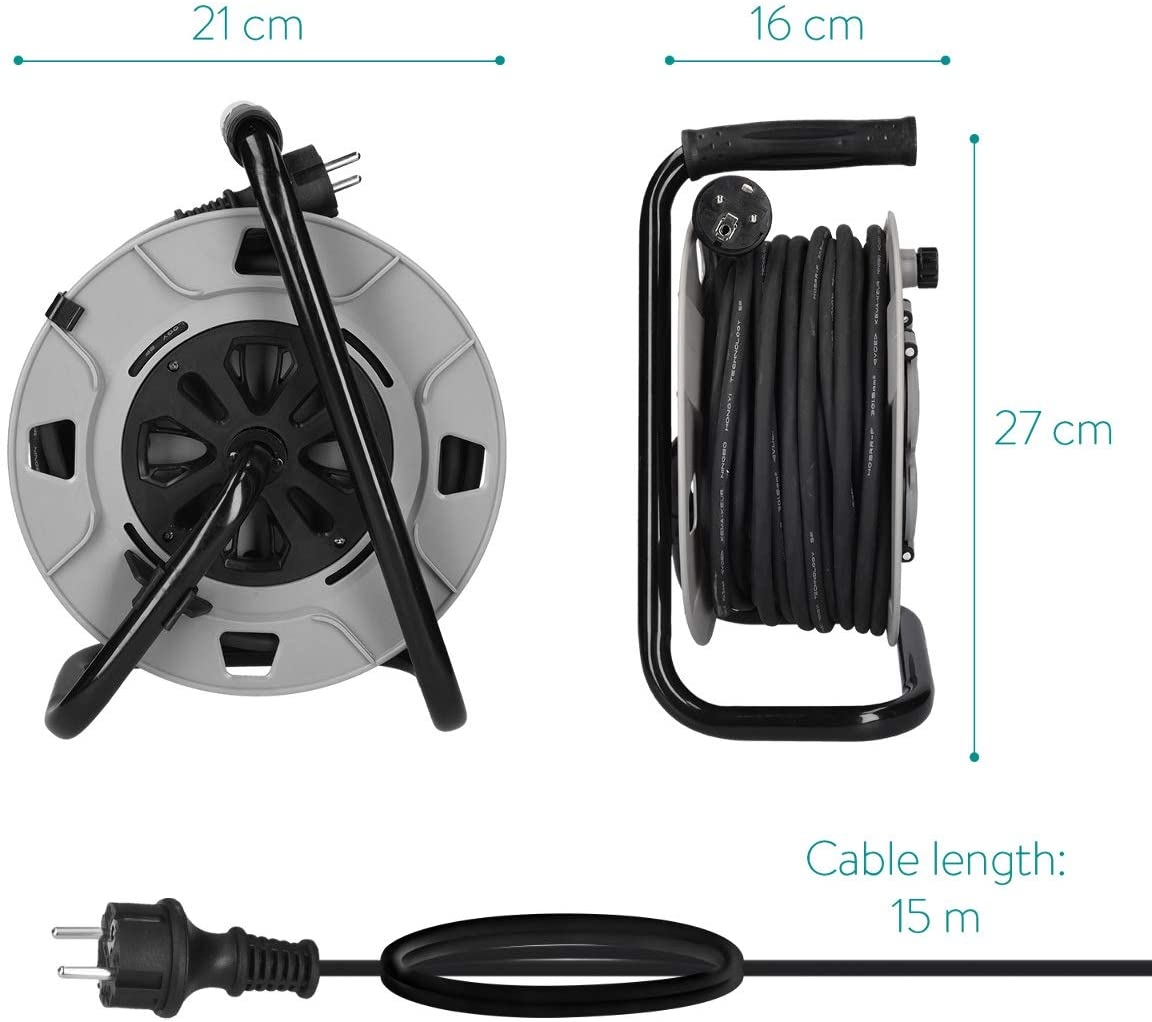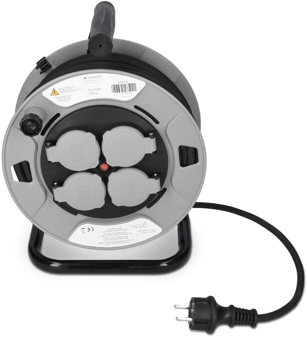 Navaris Cable Reel - Μπαλαντέζα με 4 Υποδοχές Schuko - 15m - Black (47375.15)