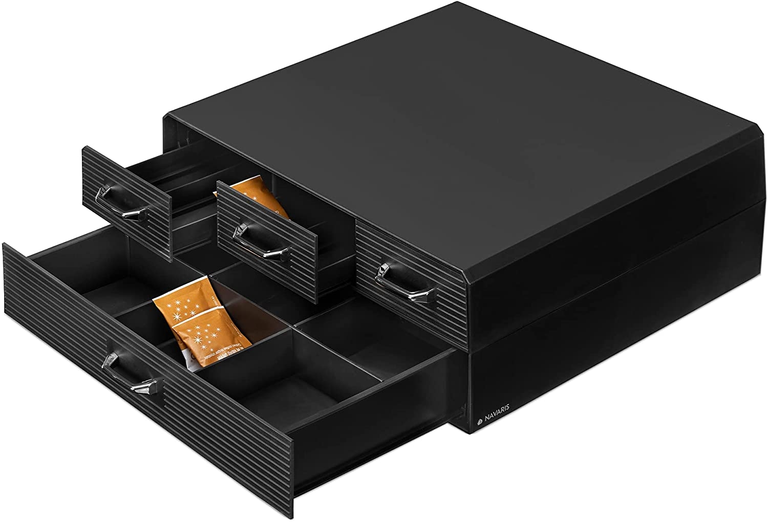 Αποθηκεύστε τις αγαπημένες σας κάψουλες καφέ με το κομψό κουτί αποθήκευσης με 4 συρτάρια από τη Navaris.