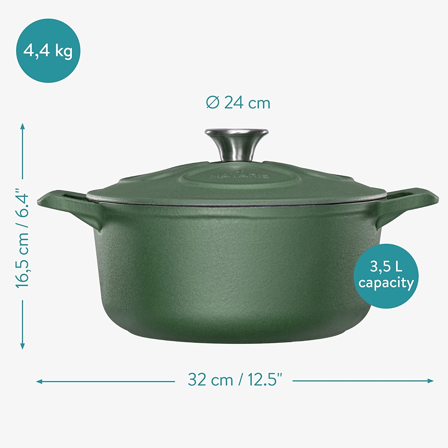 Navaris Cast Iron Casserole Dish with Lid - Αντικολλητική Κατσαρόλα από Χυτοσίδηρο για Εστίες / Φούρνο - 24cm - 3.5L - Matte Green (48777.02.80)