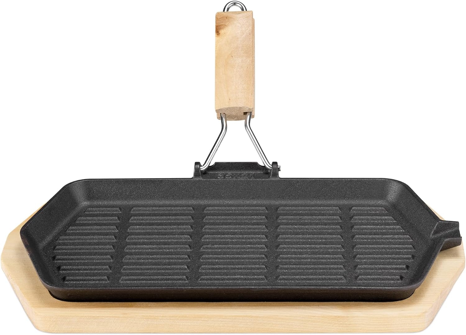 Μπορείτε να ψήσετε ή τα σοτάρετε και να δημιουργήσετε εύκολα νόστιμα απολαυστικά πιάτα. Οι fajitas και οι μπριζόλες μπορούν να γίνουν σε χρόνο μηδέν και μπορούν να σερβιριστούν με στυλ χάρη στο ξύλινο σουβέρ. Αυτό το τηγάνι μπορεί να διαρκέσει για δεκαετίες με τη σωστή φροντίδα, Τέλος, αποθηκεύεται εύκολα, εσείς απλά διπλώστε τη λαβή μετά τον καθαρισμό. Όταν είστε έτοιμοι να μαγειρέψετε ξανά, απλά ξεδιπλώστε τη λαβή και το τηγάνι είναι έτοιμο.