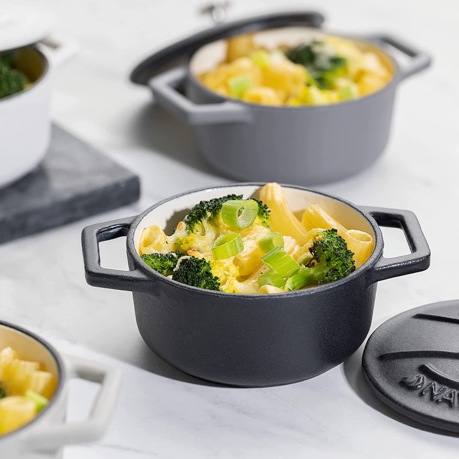 Ο χυτοσίδηρος προσφέρει ομοιόμορφη κατανομή θερμότητας όταν φτιάχνετε πιάτα για εσάς και την οικογένειά σας. Δοκιμάστε τις μίνι κατσαρόλες για πιάτα au gratin, ζυμαρικά φούρνου, μίνι σουφλέ και πολλά άλλα.