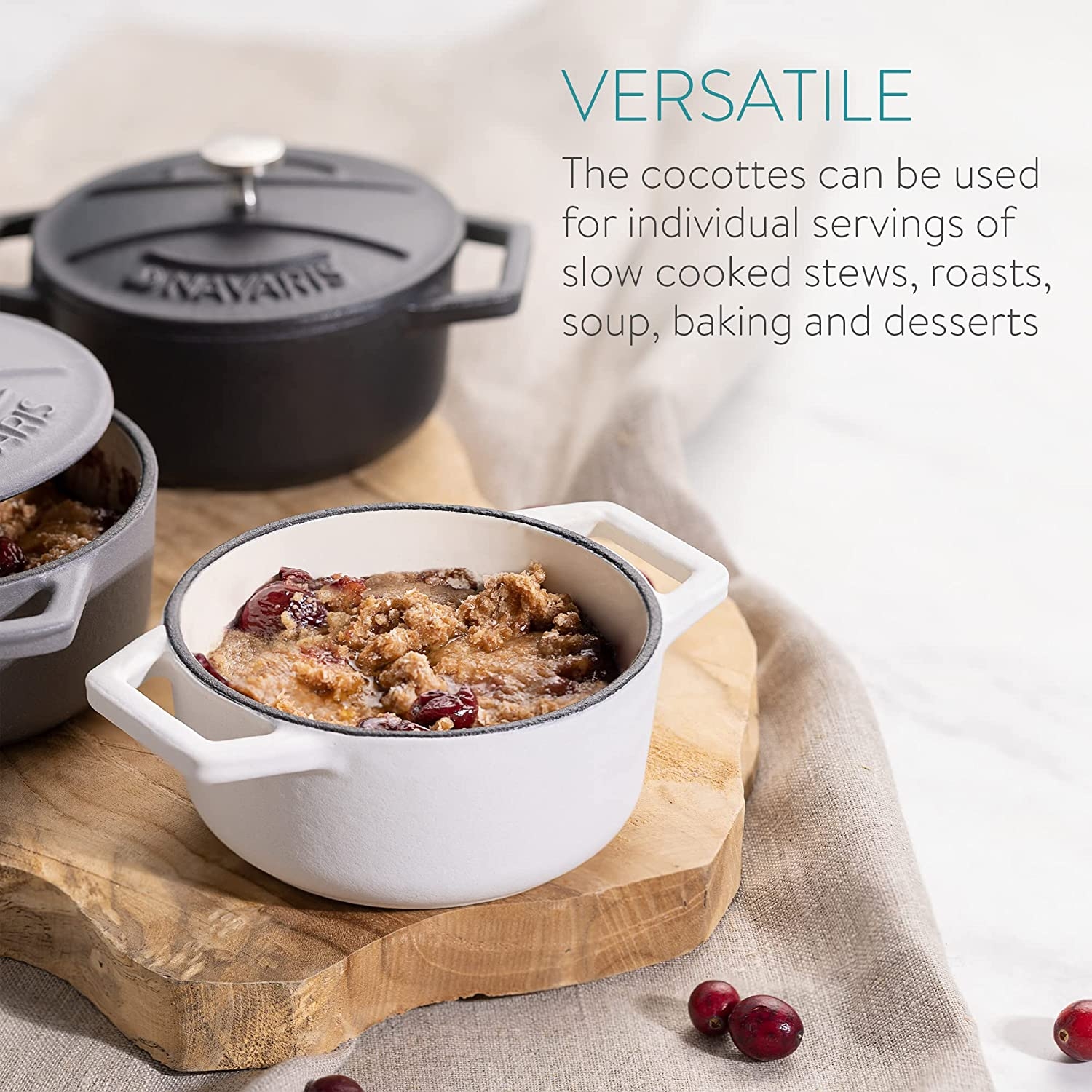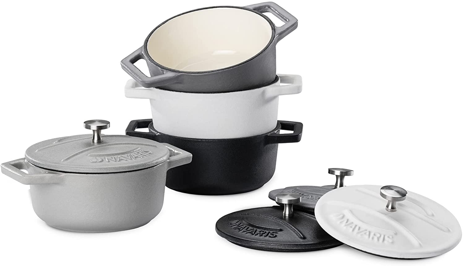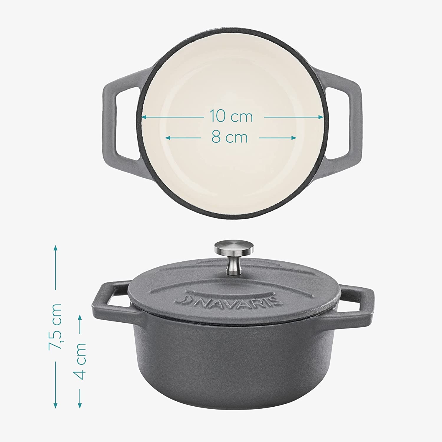 Βελτιώστε τη μαγειρική σας και προσθέστε ένα μοναδικό στυλ στην κουζίνα σας, με τα υψηλής ποιότητας μαγειρικά σκεύη Cocotte της Navaris. Αυτό το σετ από 4 μικρές κατσαρόλες από χυτοσίδηρο είναι ιδανικό για να προετοιμάσετε και να σερβίρετε μεμονωμένες μερίδες, πιάτα ψησίματος και πρωινού.