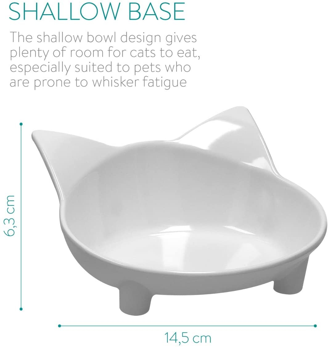 Τα ειδικά πόδια στη βάση κρατούν το μπολ να μην γλιστράει ενώ τα αγαπημένα σας κατοικίδια τρώνε. Ο ανοιχτός, ρηχός σχεδιασμός είναι ιδανικός για γάτες με ευαίσθητα μουστάκια και το μέγεθος είναι κατάλληλο τόσο για ενήλικες γάτες όσο και γατάκια.
