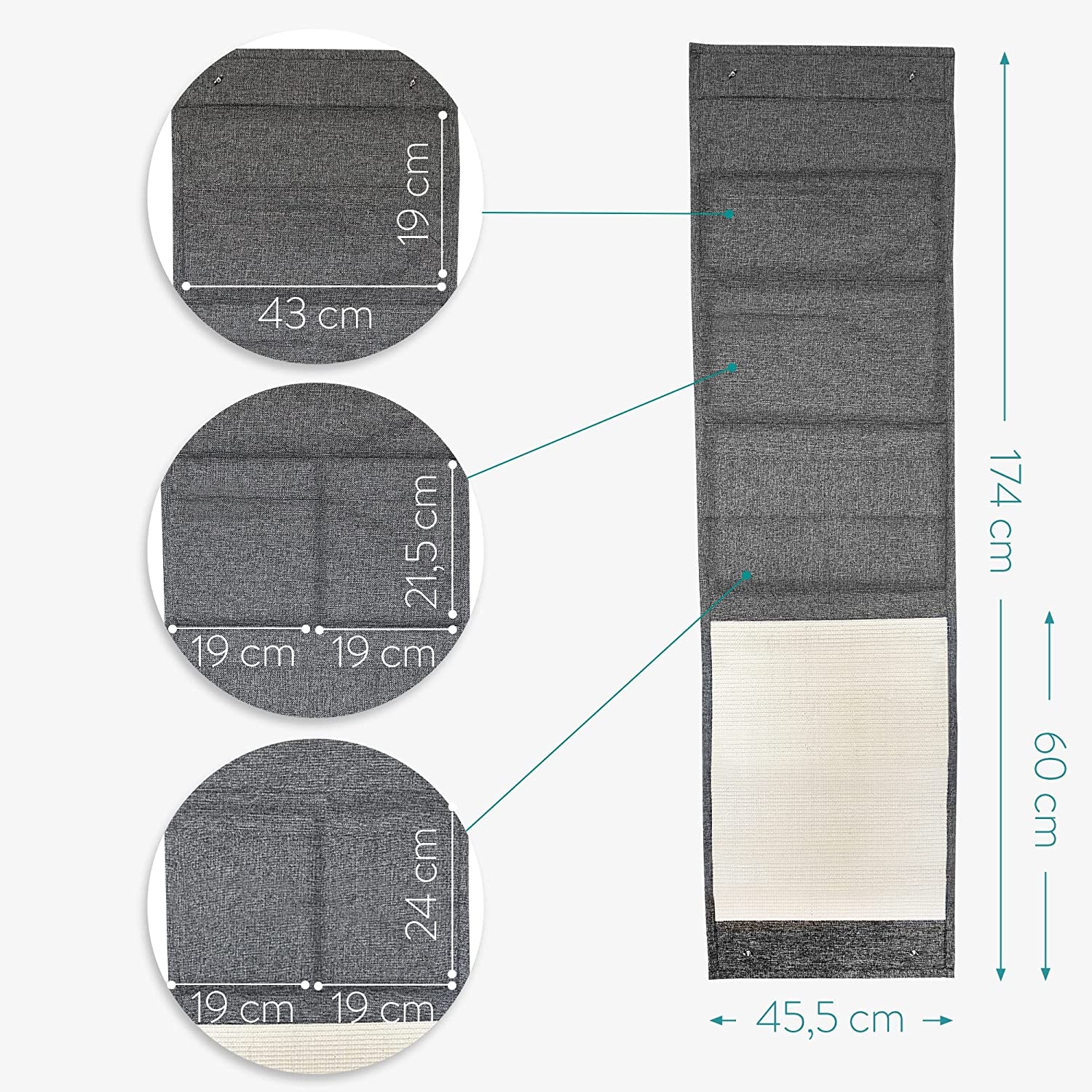 Σε αντίθεση με τους κοινούς οργανωτές, αυτό το μοναδικό gadget, είναι μία κρεμάστρα αποθήκευσης, κατάλληλη για πόρτα ή τοίχο και διαθέτει ειδικό τμήμα ώστε η γάτα σας να ξύνει τα νύχια της. Κατασκευασμένο από στιβαρό σιζάλ και λινό, με ίνες στο κάτω μέρος της κρεμάστρας, που προσφέρουν στις γάτες ένα εύχρηστο μέρος για να ξύνουν και να φροντίζουν τα νύχια τους.