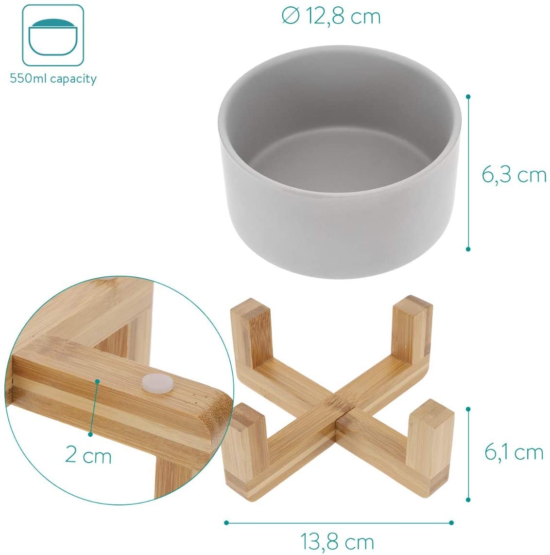 Δεν λεκιάζουν ούτε μεταφέρουν τη γεύση και είναι αφαιρούμενα για εύκολο καθάρισμα. Οι βάσεις από ξύλο μπαμπού εμποδίζουν τα μπολ να γλιστρούν έτσι ώστε το πάτωμα σας να παραμένει καθαρό. Διατηρεί φαγητό και νερό στα πιάτα και μακριά από το πάτωμα.