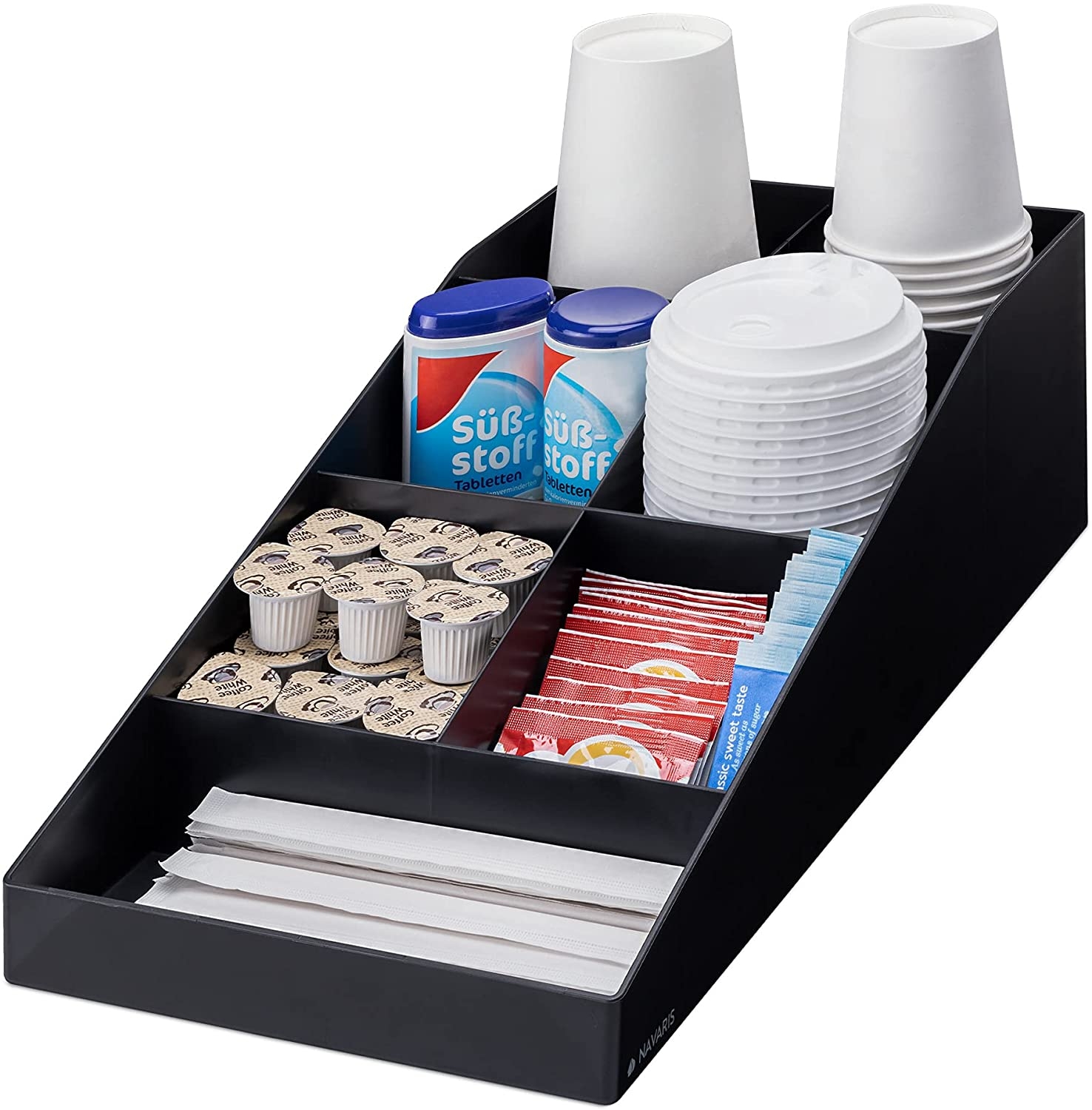 Θέλετε φρέσκο καφέ; Με τη βοήθεια αυτού του αξεσουάρ της Navaris, εξοικονομείτε πολύ χρόνο αναζητώντας τα σωστά αντικείμενα. Υπάρχουν θέσεις για ζάχαρη, κύπελλα καφέ, αναδευτήρες, κάψουλες και όλα αυτά σε ένα μέρος.