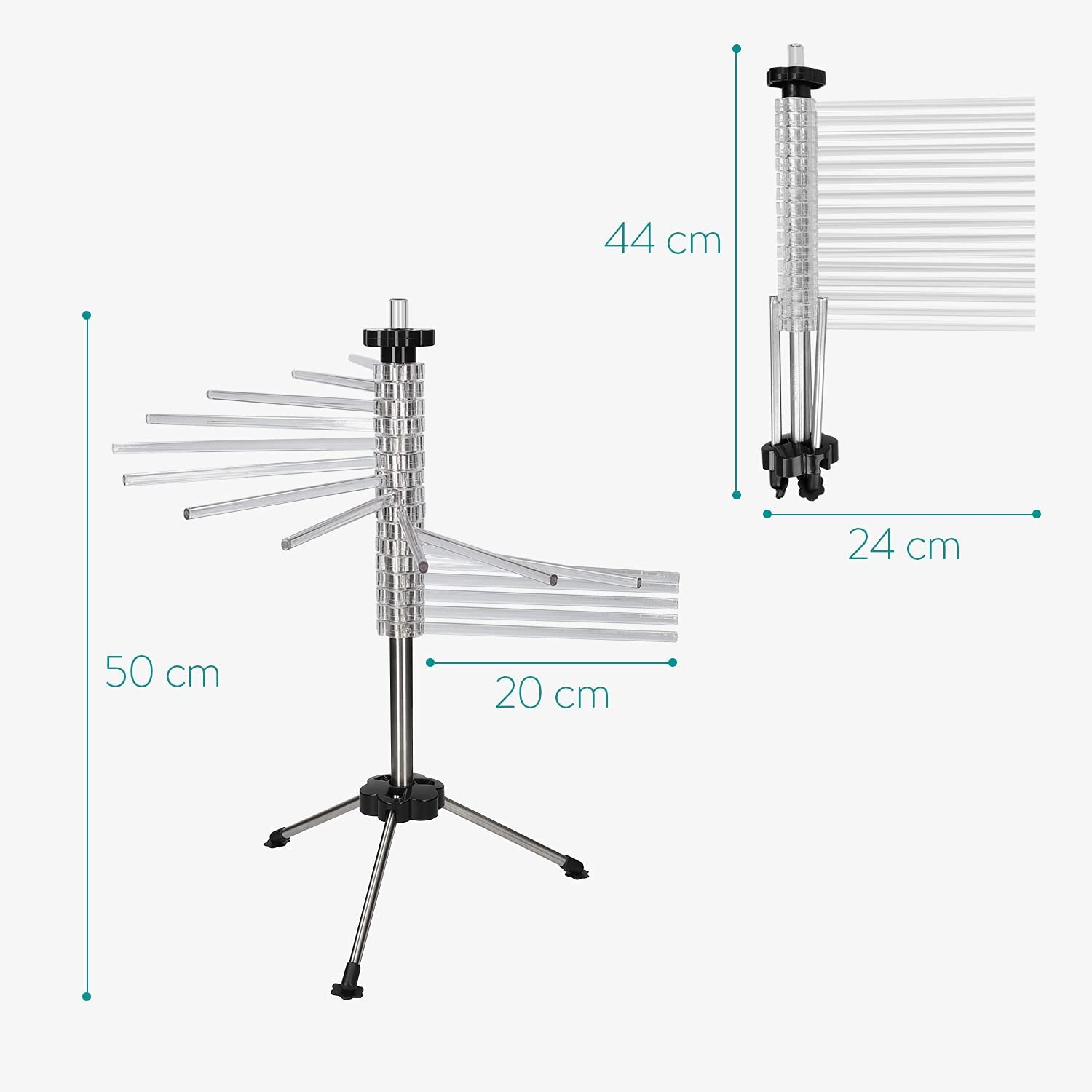 Η βάση είναι περιστρεφόμενη και διαθέτει 16 βραχίονες που μπορούν να κρατήσουν φρέσκα χειροποίητα ζυμαρικά έως 2 κιλά. Στεγνώστε όλους τους τύπους ζυμαρικών, όπως fettuccine, σπαγγέτι, φιδέ, linguini και άλλα. Η βάση διευκολύνει επίσης την κοπή ζυμαρικών.