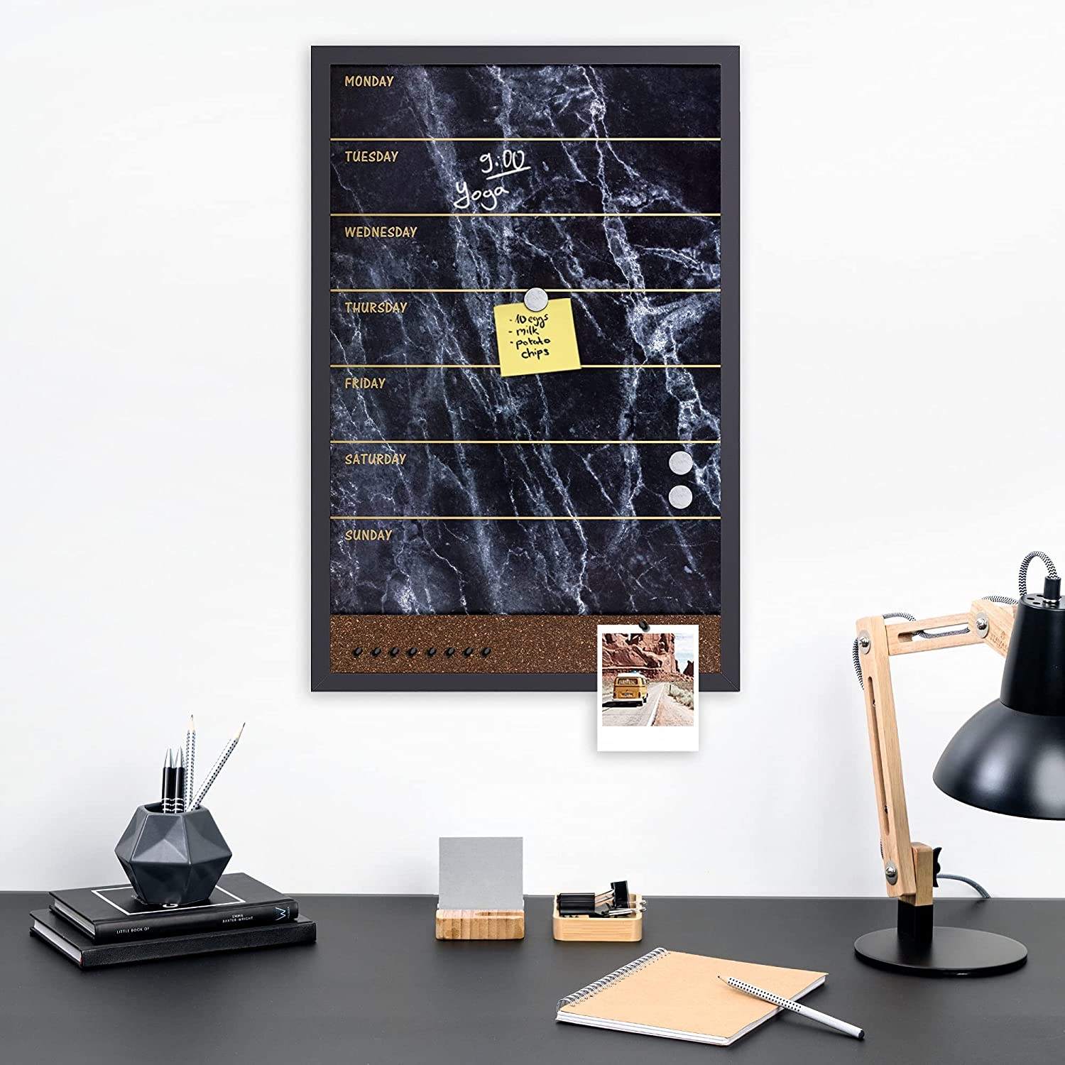 Κρεμάστε το εύκολα στον τοίχο και ακολουθήστε το εβδομαδιαίο σας πρόγραμμα, χωρίς να παραλείψετε τίποτα. Ο σχεδιασμός του διακοσμεί όμορφα κάθε χώρο στο σπίτι, γραφείο, σχολείο και τραβά τα βλέμματα.