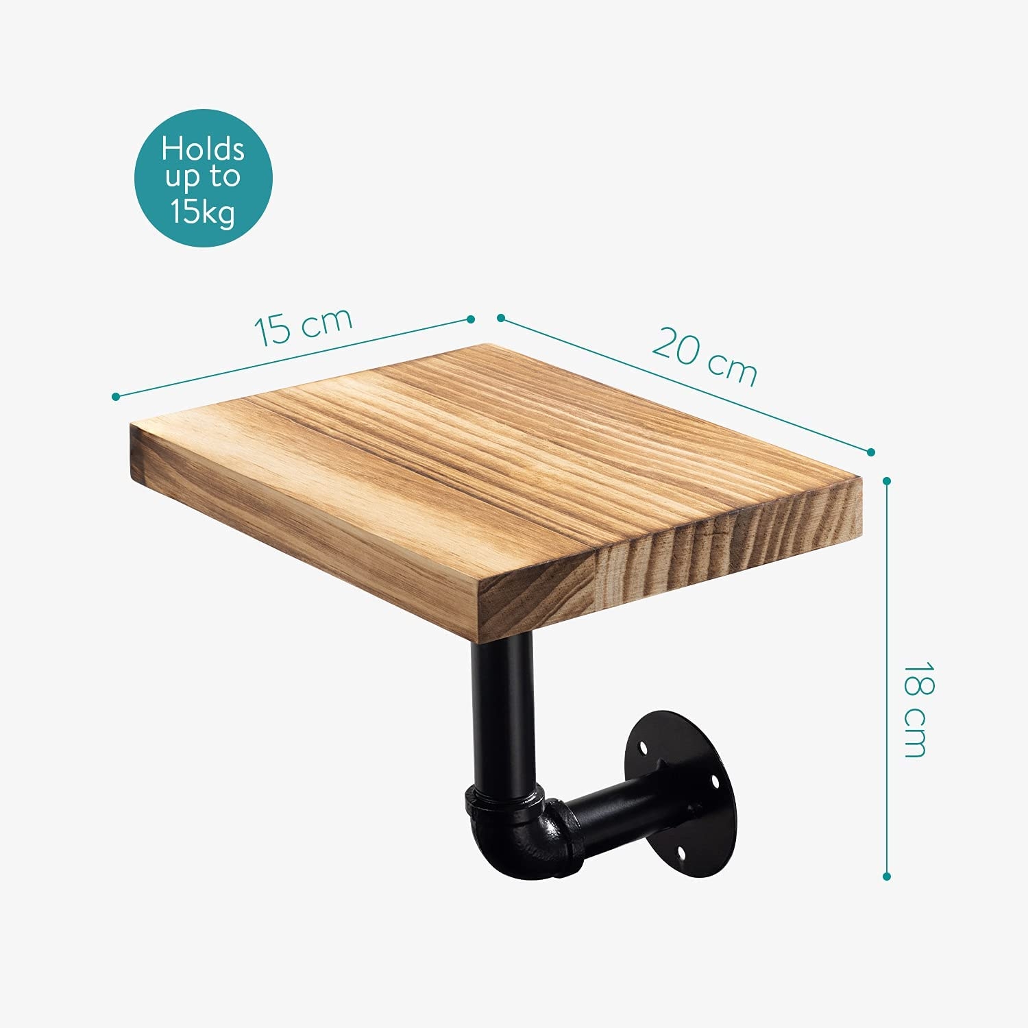 Τα ράφια είναι κατασκευασμένα από πραγματικό συμπαγές ξύλο πεύκου με χρωματισμένο φινίρισμα, ενώ η βάση συγκράτησης είναι κατασκευασμένη από σίδερο. Χάρη στον ρετρό σχεδιασμό, τα διακοσμητικά ράφια είναι απόλυτα εντυπωσιακά σε κάθε δωμάτιο.