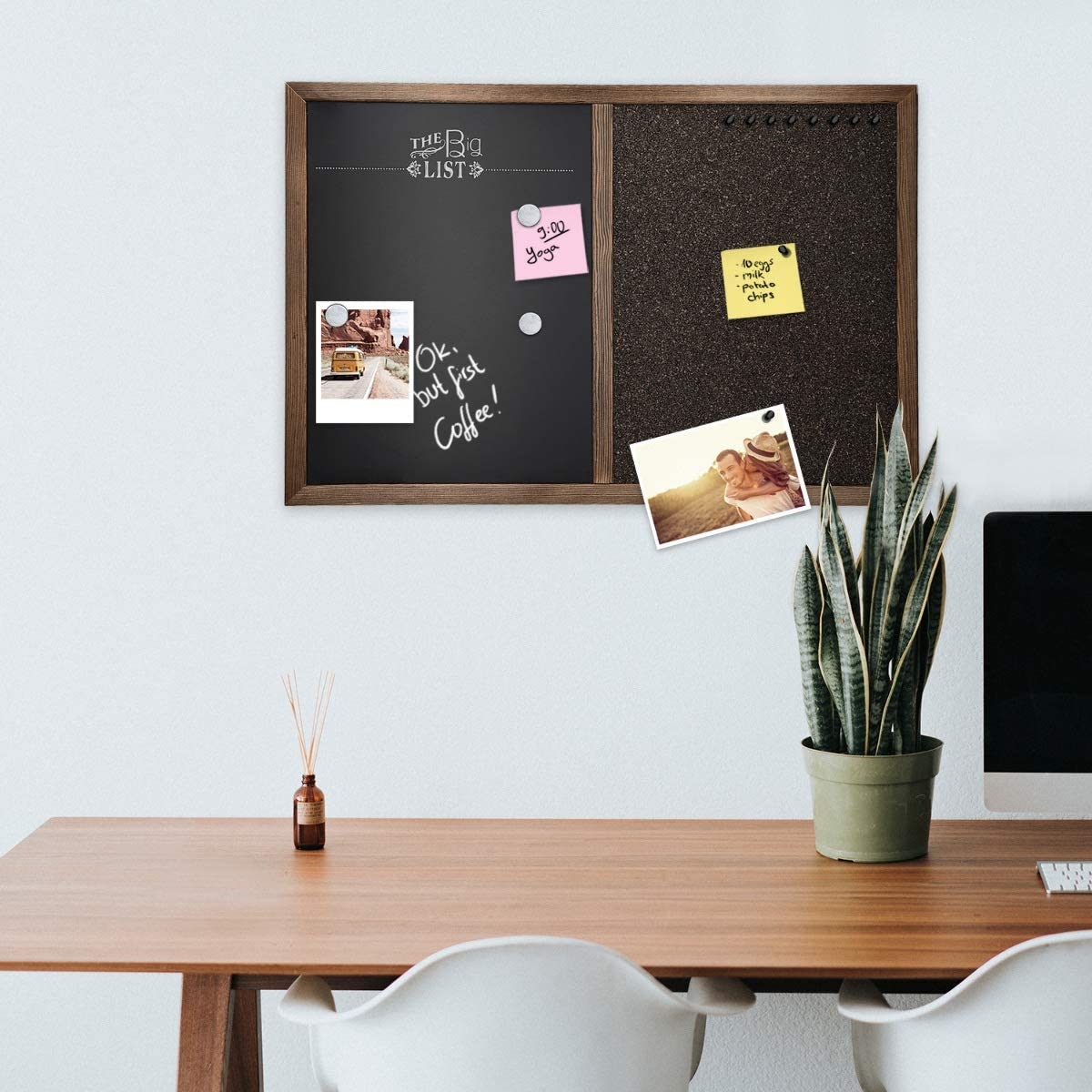 Καρφιτσώστε μηνύματα, σημειώσεις, υπενθυμίσεις, φωτογραφίες και πολλά άλλα στον πίνακα από φελλό ή απλά σημειώστε τα μηνύματα ή τις υπενθυμίσεις σας στον μαυροπίνακα με την κιμωλία. Ο σχεδιασμός του διακοσμεί όμορφα κάθε χώρο, στο σπίτι, στο γραφείο ή στο σχολείο και τραβά όλα τα βλέμματα.