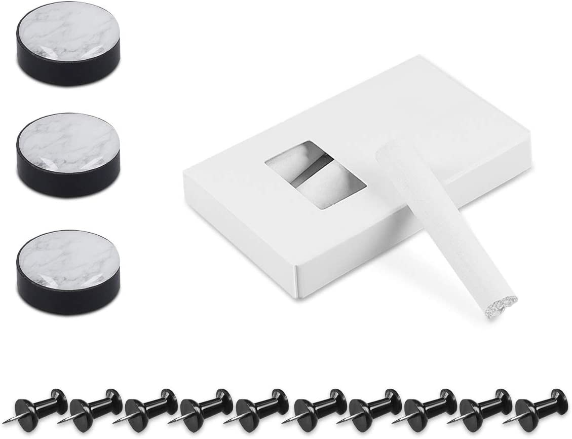 Η συσκευασία περιλαμβάνει: 1 x πίνακας συνδυασμού κιμωλίας και φελλού, 4 x κομμάτια λευκής κιμωλίας, 3 x λευκοί μαγνήτες, 10 x μαύρες καρφίτσες.