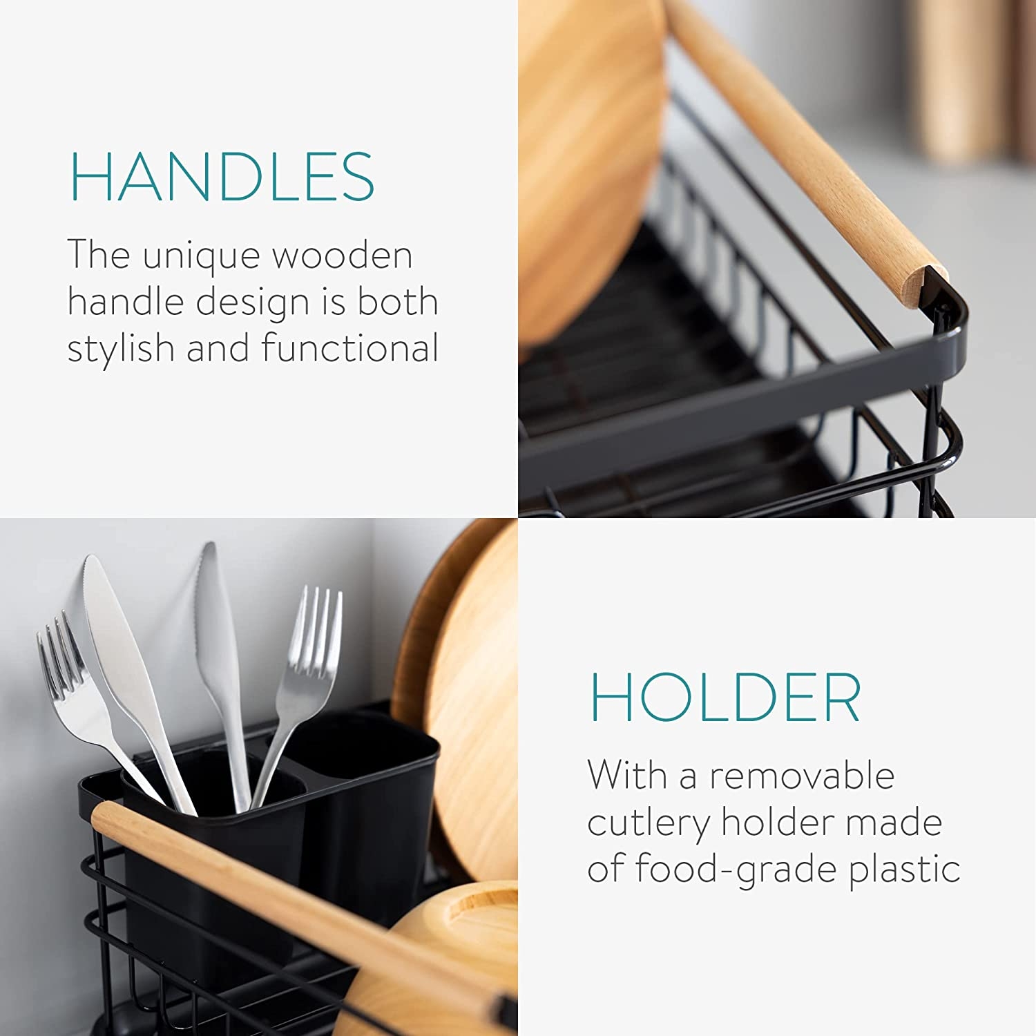 Navaris Dish Drainer Rack - Μεταλλική Πιατοθήκη / Στραγγιστήρι με Ξύλινες Λαβές - Black (52545.02)