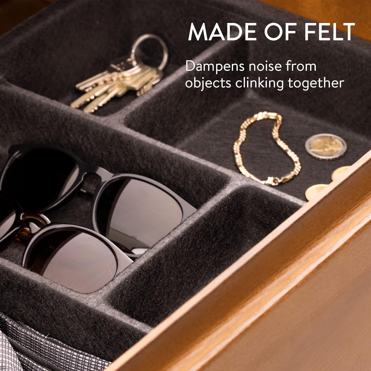 Η μαλακή του επιφάνεια από τσόχα, έχει καλύτερη αίσθηση από τους πλαστικούς και προστατεύει τα συρτάρια σας αλλά και τα αντικείμενά σας από χτυπήματα, γρατσουνιές, αλλά και τους κροταλισμούς από τα μεταλλικά αντικείμενα. Το διακριτικό του ουδέτερο χρώμα ταιριάζει σε κάθε συρτάρι, κάθε χώρο και είναι κατάλληλο για άντρες και γυναίκες.