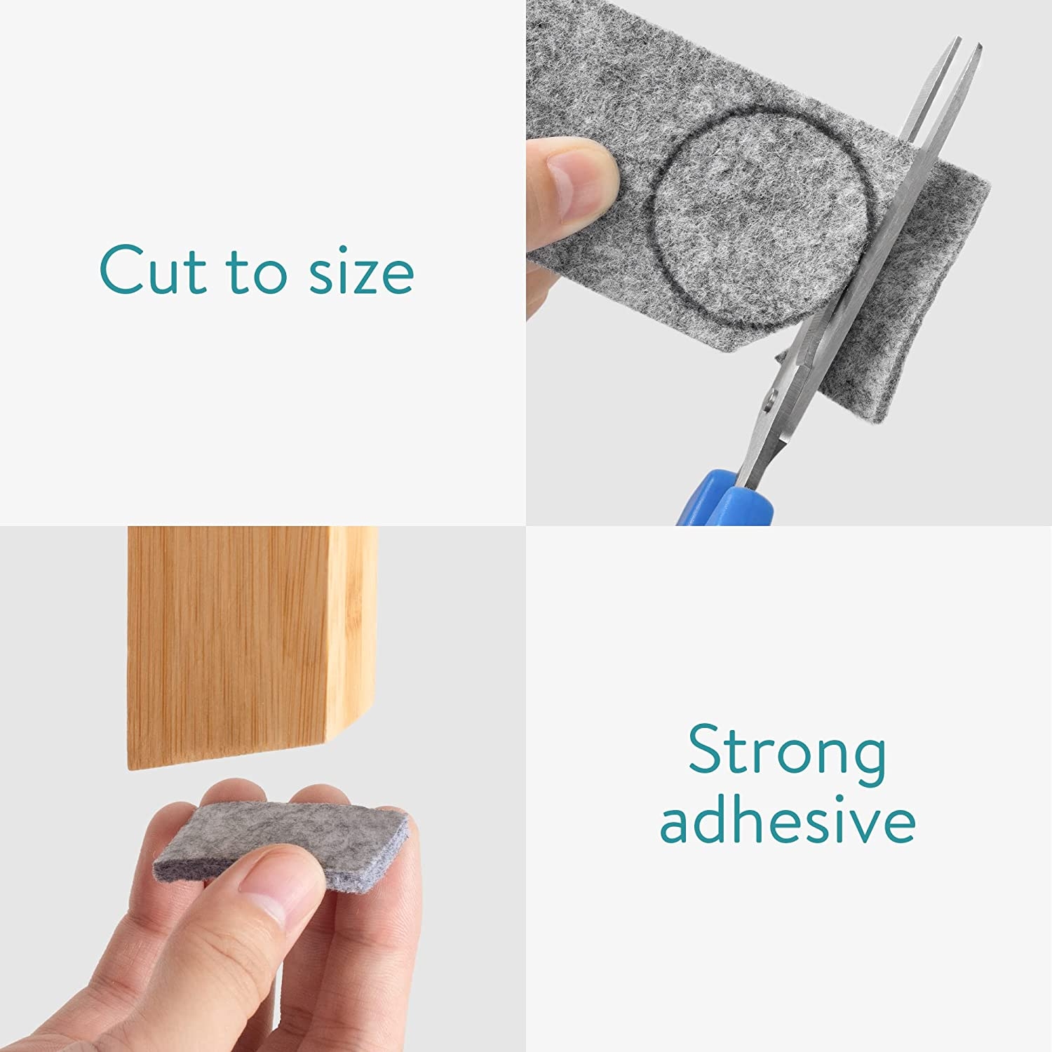 Το σετ έρχεται σε δύο διαφορετικά μεγέθη που μπορούν να κοπούν και να ταιριάζουν τέλεια στα πόδια της καρέκλας ή στα πόδια των επίπλων σας. Η ισχυρή αυτοκόλλητη επιφάνεια καθιστά εύκολη την τοποθέτησή του σε καρέκλες, σκαμπό, τραπέζια, ντουλάπια και άλλα.