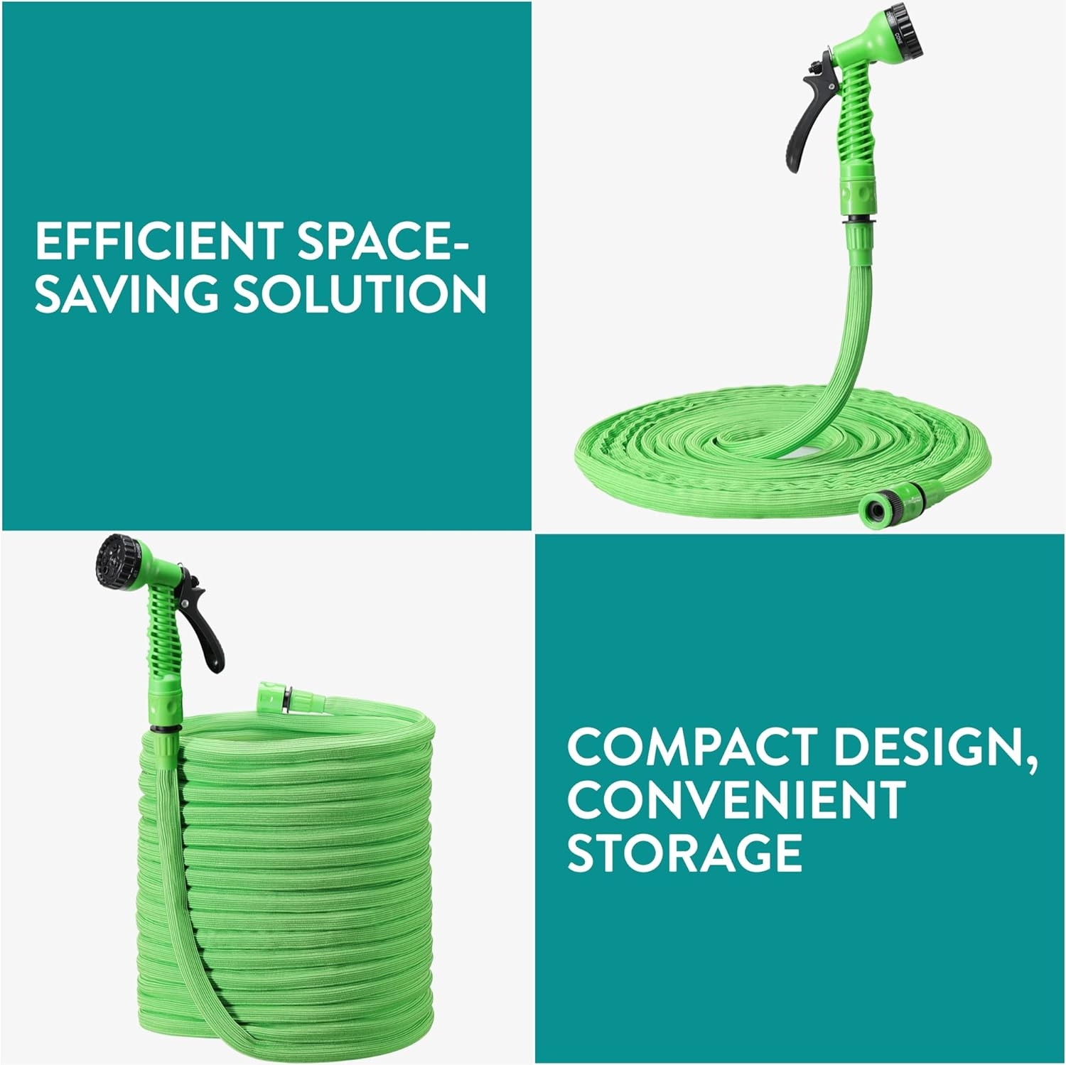 Το επεκτεινόμενο εύκαμπτο λάστιχο κήπου της Navaris, με 7 λειτουργίες ψεκασμού και μήκος 15-30m, είναι ιδανικό για να απολαύσετε την κηπουρική σας και όχι μόνο! Ποτίσετε φυτά, λουλούδια και το γκαζόν στον κήπο σας, ή πλύντε το αυτοκίνητό σας, το οποίο βρίσκεται πολύ μακριά από τη βρύση.