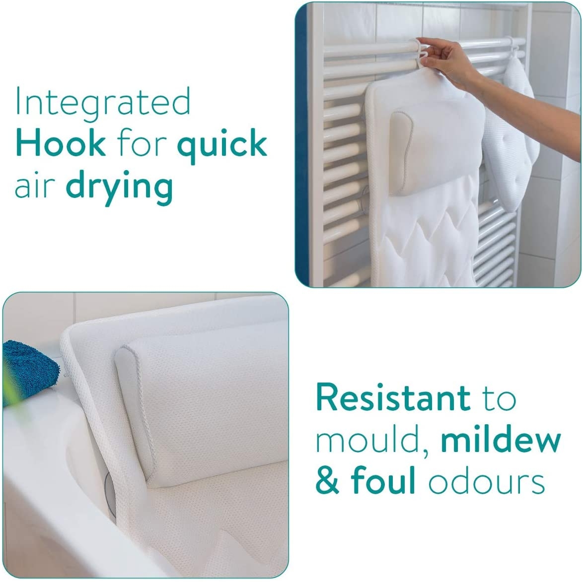 Η τεχνολογία πλέγματος αέρα Air Mesh, απαλλάσσει το στρώμα μπάνιου από υγρές μυρωδιές και μούχλα. Διατίθεται σε λευκό χρώμα ενώ συνδυάζεται αβίαστα με οποιοδήποτε σχέδιο μπάνιου. Επίσης, στηρίζει το κεφάλι, το λαιμό και τον κορμό σας.