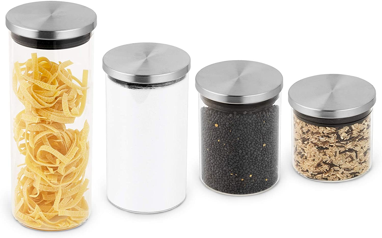 • Σετ 4 Γυάλινα Βάζα Αποθήκευσης με Καπάκι από Ανοξείδωτο Ατσάλι από την Navaris