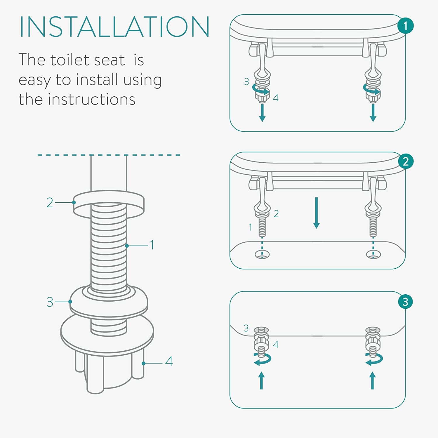 Το κομψό κάθισμα συνοδεύεται από μεντεσέδες χρωμίου, για μια αριστοκρατική εμφάνιση που μπορεί να λείπουν από ορισμένα πλαστικά καθίσματα. Το κάθισμα είναι μπορεί να τοποθετηθεί στις περισσότερες τουαλέτας κανονικού μεγέθους, ενώ η εγκατάστασή του είναι εύκολη χρησιμοποιώντας τις οδηγίες.