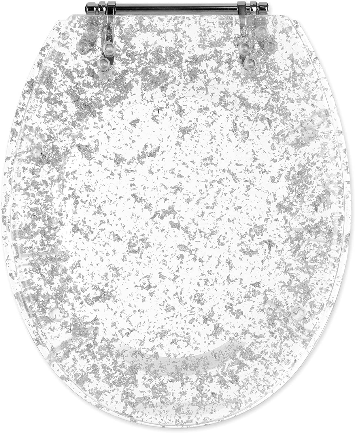 Το υλικό που περιβάλλει το αστραφτερό γκλίτερ είναι διαφανές, για μια κομψή μοντέρνα εμφάνιση που θα προσθέσει μια πινελιά αίγλης στο μπάνιο ή το WC σας. Αφήνοντας το φως να περάσει, η ημιδιαφανής ρητίνη επιτρέπει στο γκλίτερ μέσα στο κάθισμα να αστράφτει.