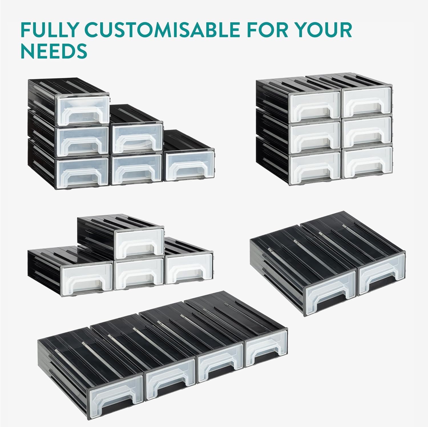 Είναι ιδανικό αν ασχολείστε με μαστορέματα, χειροτεχνίες και πολλά άλλα και σας βοηθά να διατηρείτε το σπίτι ή το χώρο εργασίας σας τακτοποιημένο και οργανωμένο. Επιπλέον, μπορείτε να προσθέστε περισσότερα συρτάρια για την επέκταση τους, βάση των αναγκών σας. Κάθε συρτάρι έχει διαστάσεις 15 x 8.6 x 4.9 cm και ταιριάζουν σε κάθε χώρο!