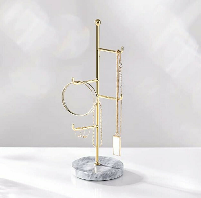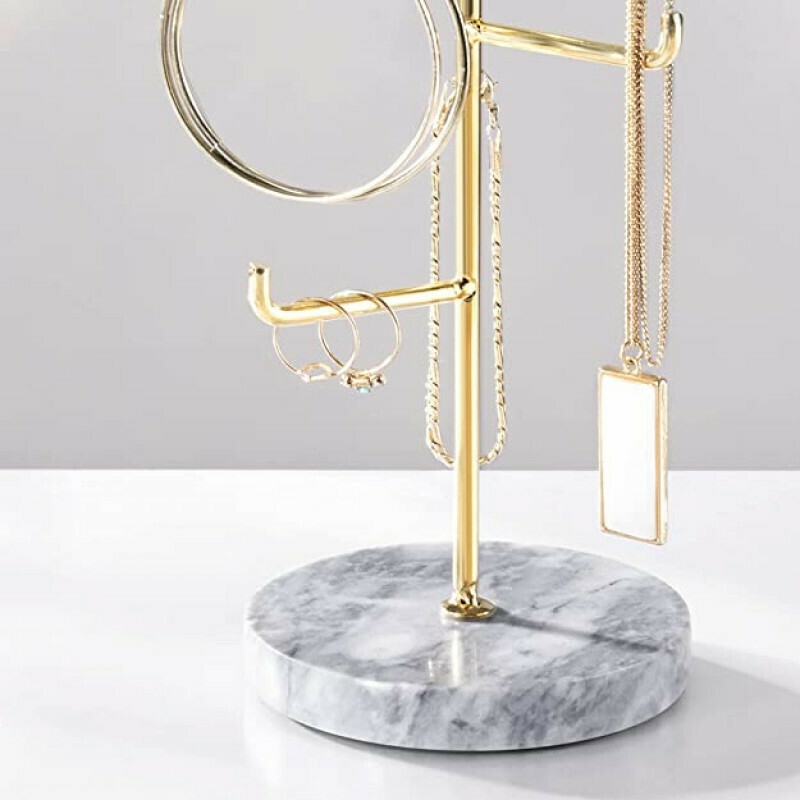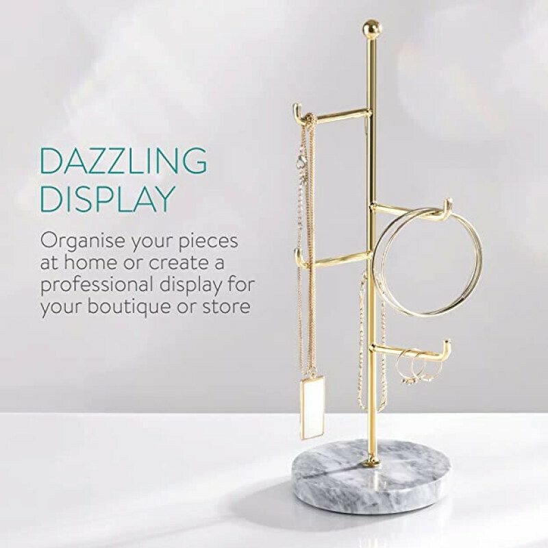 Τα ανθεκτικά μεταλλικά "κλαδιά" είναι ιδανικά για να κρεμάσετε διάφορα μεγέθη κολιέ, βραχιόλια, δαχτυλίδια, σκουλαρίκια και ρολόγια. Είναι κατασκευασμένο από μέταλλο, με κομψή μαρμάρινη βάση, που το καθιστούν ανθετικό.