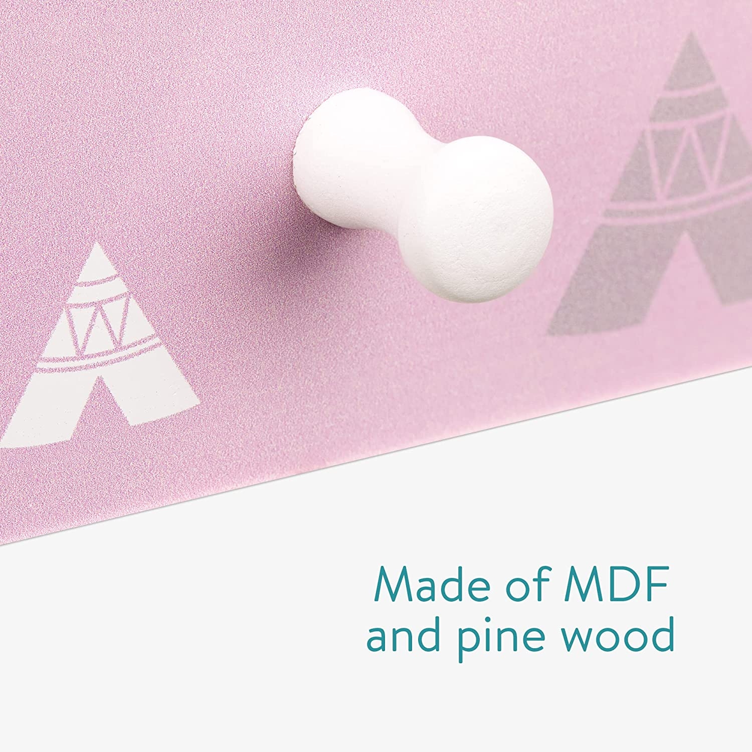 Με αυτή την κρεμάστρα μπορείτε να ενθαρρύνετε το παιδί σας να τακτοποιεί τα ρούχα του, καθώς προσφέρει τέσσερις θέσεις αρκετές για τα βασικά του πράγματα. Διαθέτει κατασκευή από MDF και ξύλο πεύκου, ενώ αποτελεί ιδανική ιδέα για δώρο γενεθλίων, βαφτίσια ή ακόμα και για μία επίσκεψη.