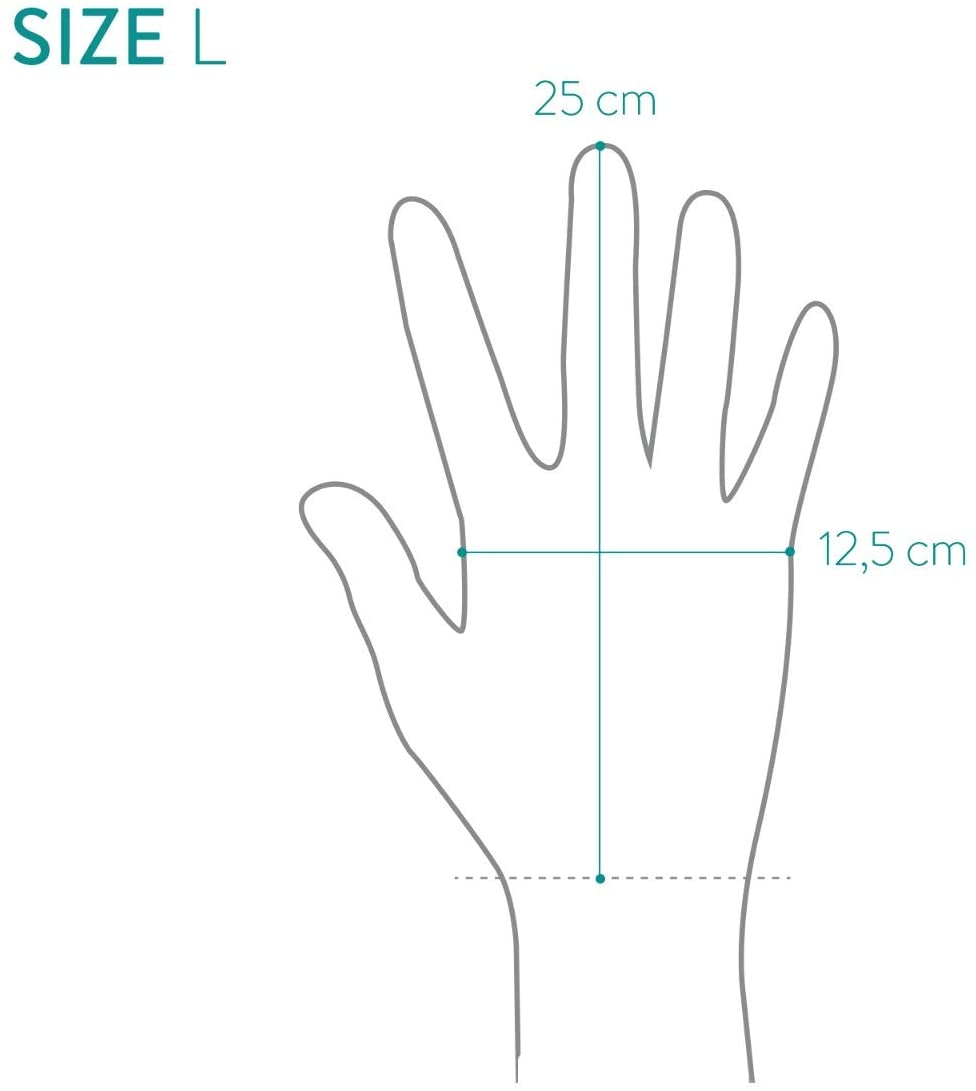 Σημείωση: Για να διασφαλίσετε ότι τα προστατευτικά γάντια ταιριάζουν τέλεια στα χέρια σας, είναι καλύτερο να μετρήσετε τα χέρια σας και να τα συγκρίνετε με τις απεικονιζόμενες διαστάσεις 25 x 12,5 cm.