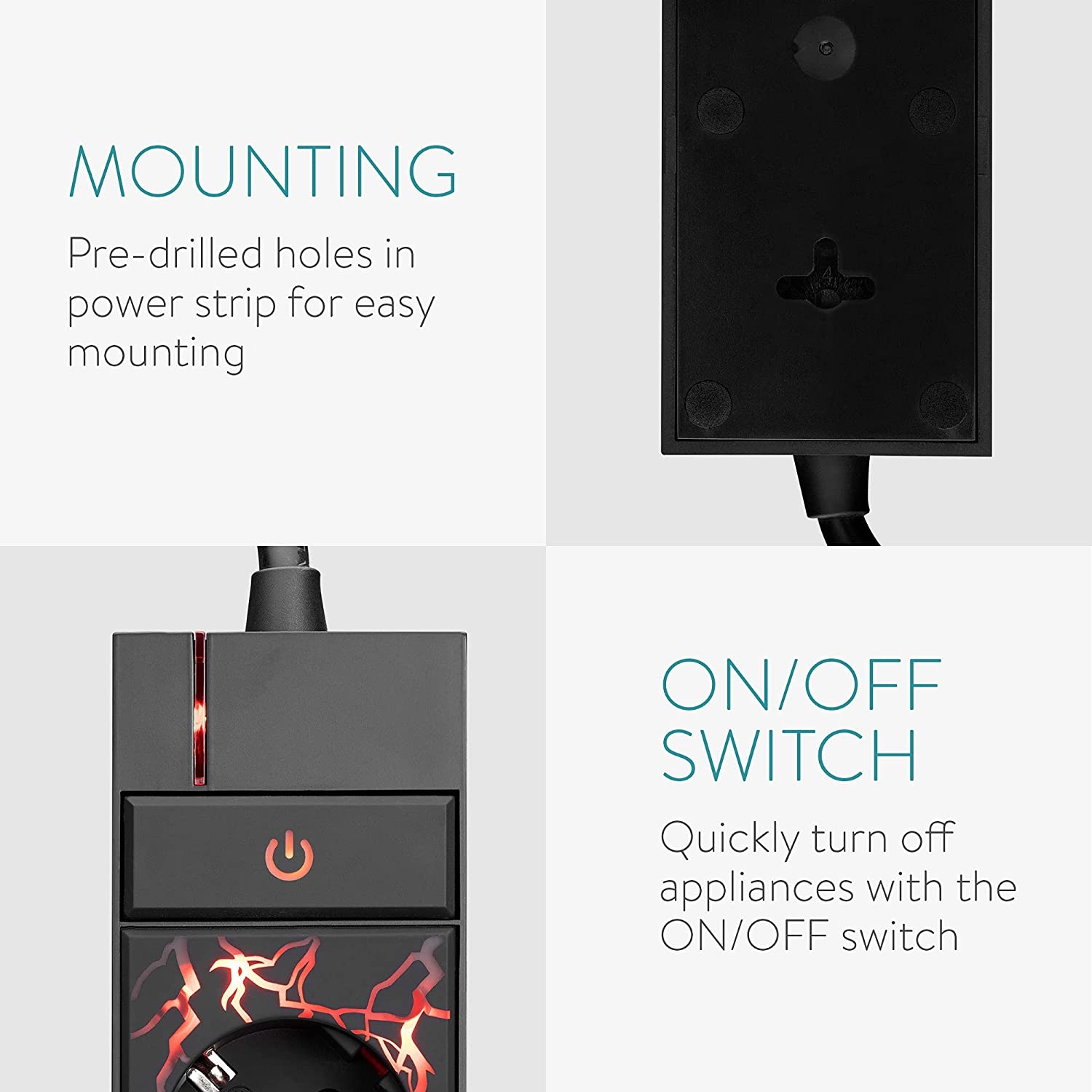 Navaris LED Power Strip - Gaming LED Πολύπριζο με 5 Υποδοχές και 2 x USB-A - Black (53268.01.01)