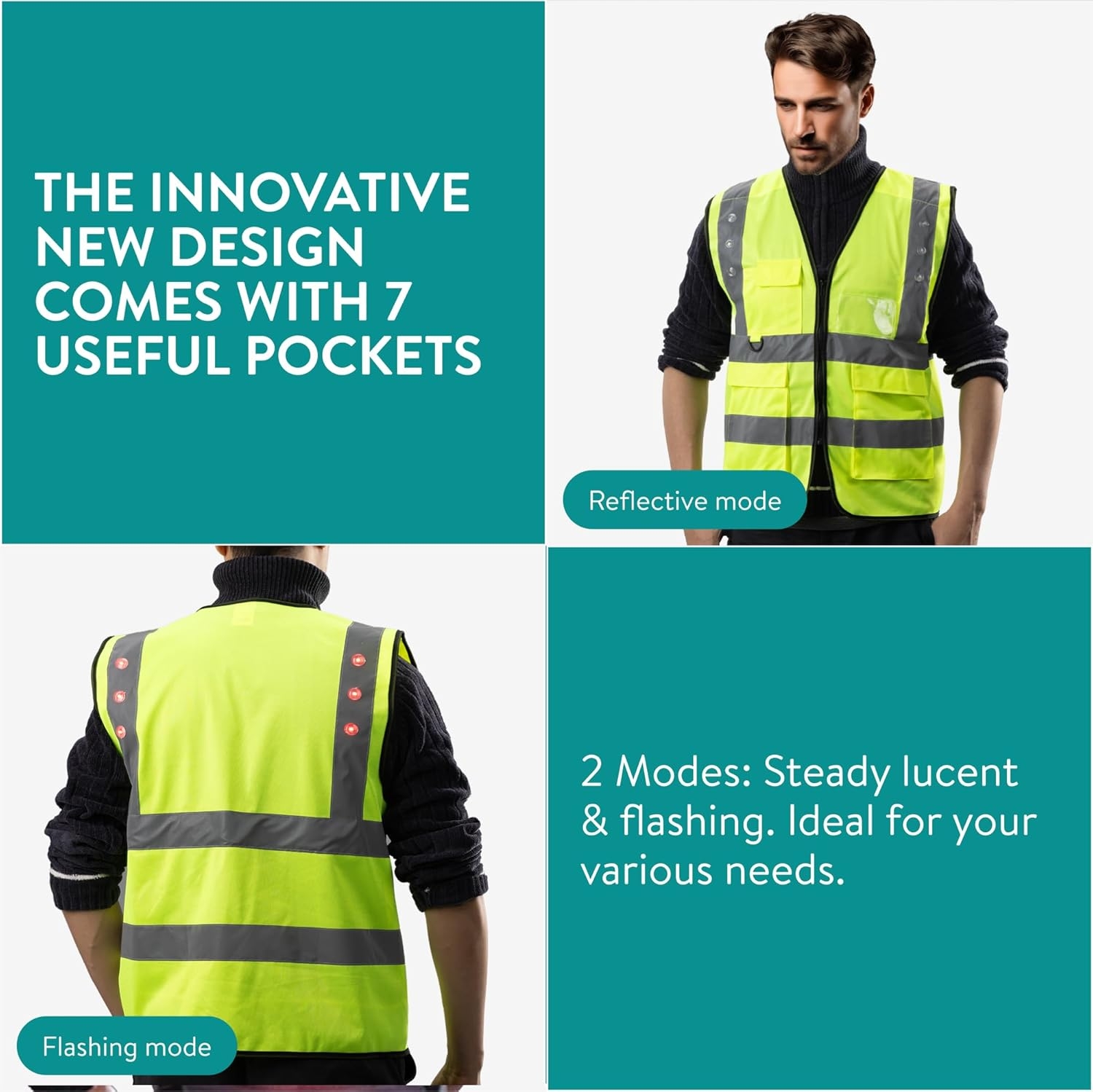 Το προειδοποιητικό γιλέκο LED της Navaris είναι η τέλεια επιλογή για όποιον αναζητά μέγιστη ασφάλεια και λειτουργικότητα σε συνθήκες μειωμένης ορατότητας. Σχεδιασμένο σε έντονο κίτρινο χρώμα και με 7 πρακτικές τσέπες για ασφαλή αποθήκευση βασικών αντικειμένων, όπως κλειδιά, πορτοφόλι και κινητό.
