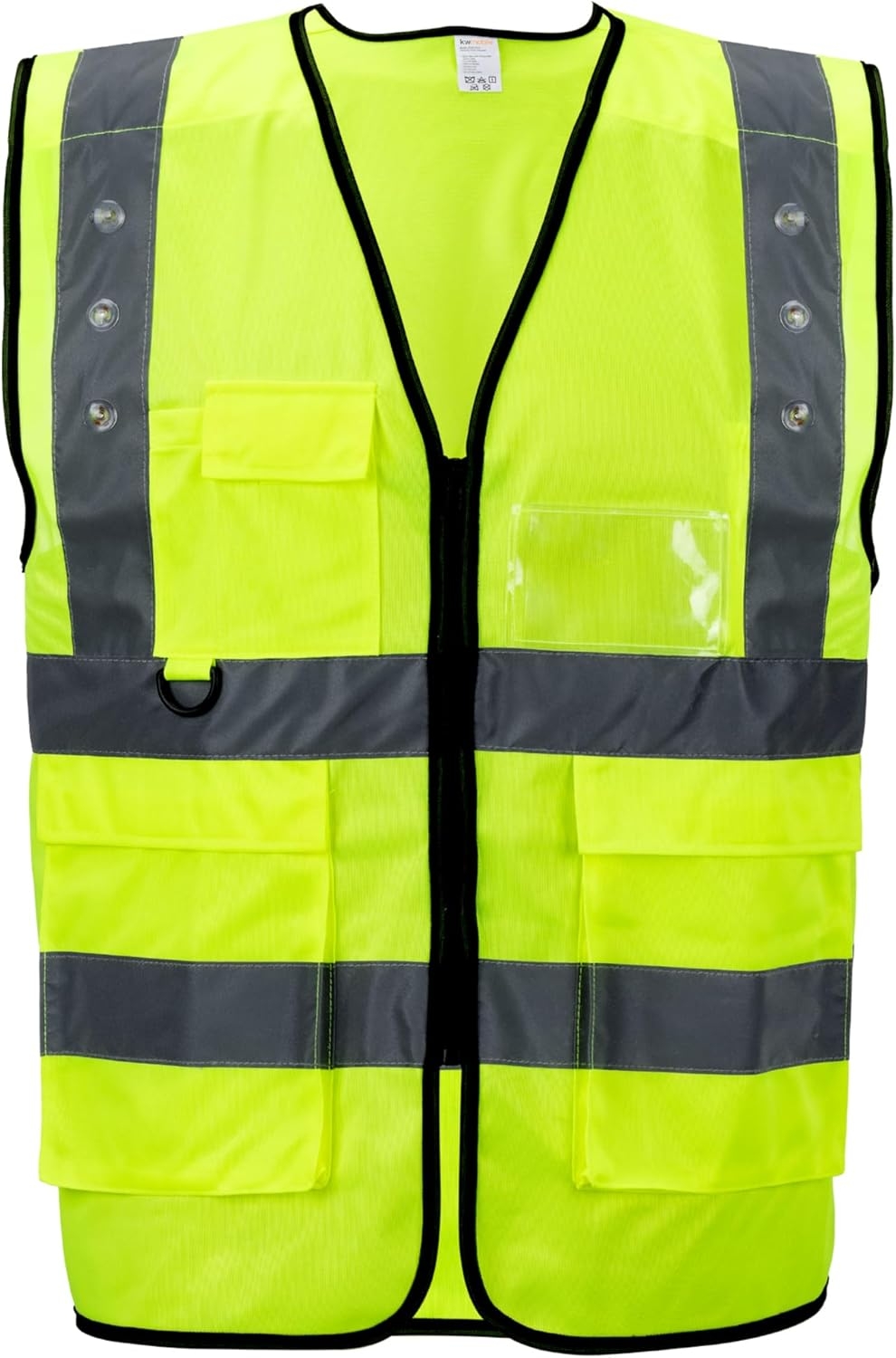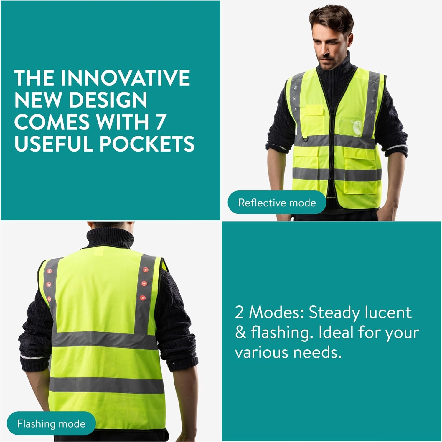 Το προειδοποιητικό γιλέκο LED της Navaris είναι η τέλεια επιλογή για όποιον αναζητά μέγιστη ασφάλεια και λειτουργικότητα σε συνθήκες μειωμένης ορατότητας. Σχεδιασμένο σε έντονο κίτρινο χρώμα και με 7 πρακτικές τσέπες για ασφαλή αποθήκευση βασικών αντικειμένων, όπως κλειδιά, πορτοφόλι και κινητό.