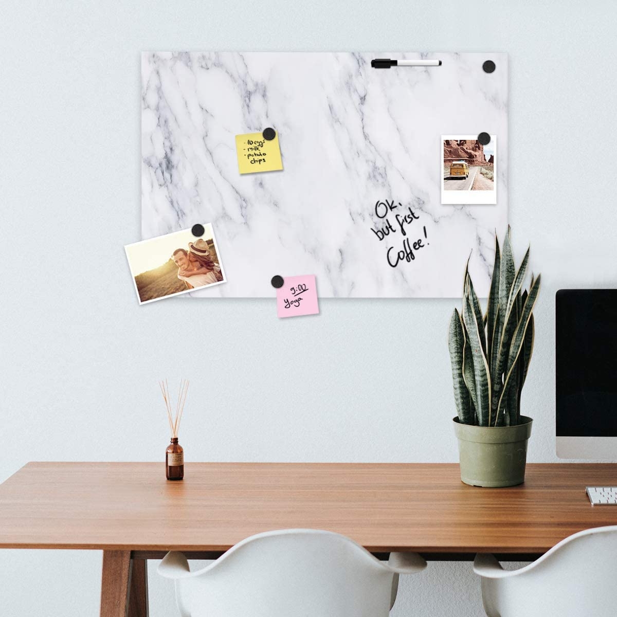 Ο μαγνητικός πίνακας ανακοινώσεων της Navaris είναι ο ιδανικός τρόπος να οργανώσετε τις ιδέες και τις σημειώσεις σας. Τοποθετήστε μηνύματα, σημειώσεις, υπενθυμίσεις, φωτογραφίες και πολλά άλλα με τα μαγνητάκια που περιέχονται στη συσκευασία ή γράψτε πάνω στον πίνακα με τον μαρκαδόρο που διαθέτει.