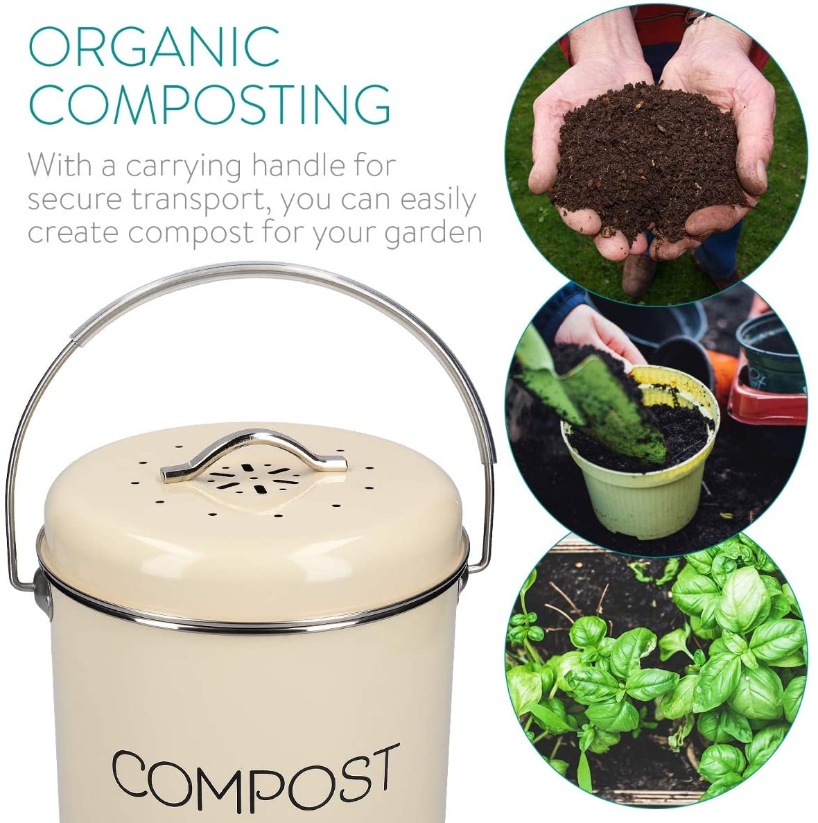 Μπορεί να αποθηκευτεί είτε στην επιφάνεια εργασίας είτε κάτω από το νεροχύτη. Διαθέτοντας μια ανθεκτική λαβή μεταφοράς για ασφαλή μεταφορά, ο κάδος κομποστοποίησης είναι πρακτικός για χρήση και μετακίνηση. Με νοσταλγική εμφάνιση, σίγουρα θα συμπληρώσει την υπάρχουσα διακόσμηση και τα αξεσουάρ της κουζίνας σας.