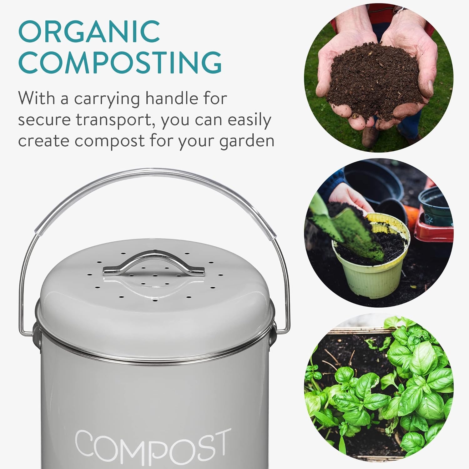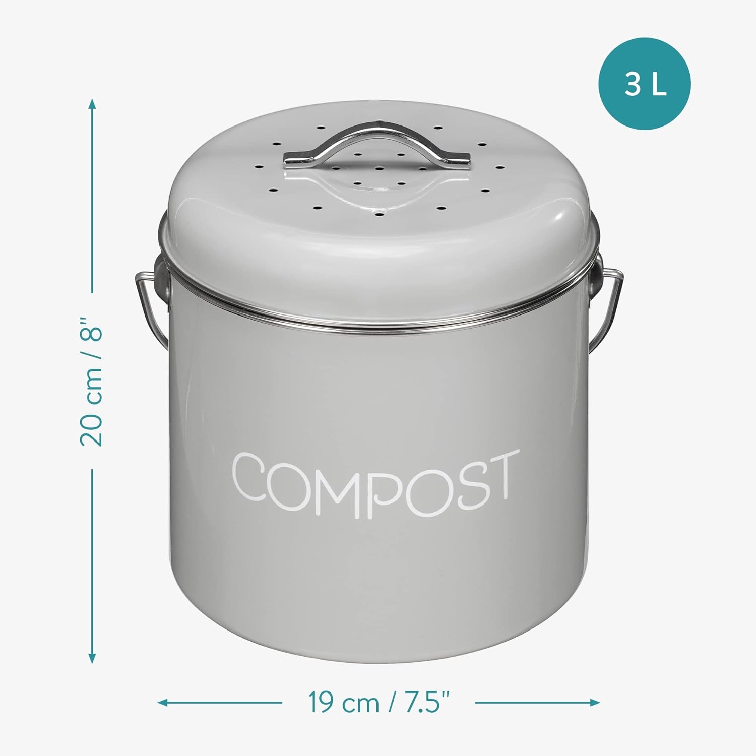 Μπορεί να αποθηκευτεί είτε στην επιφάνεια εργασίας είτε κάτω από το νεροχύτη. Διαθέτοντας μια ανθεκτική λαβή μεταφοράς για ασφαλή μεταφορά, ο κάδος κομποστοποίησης είναι πρακτικός για χρήση και μετακίνηση. Με νοσταλγική εμφάνιση, σίγουρα θα συμπληρώσει την υπάρχουσα διακόσμηση και τα αξεσουάρ της κουζίνας σας.