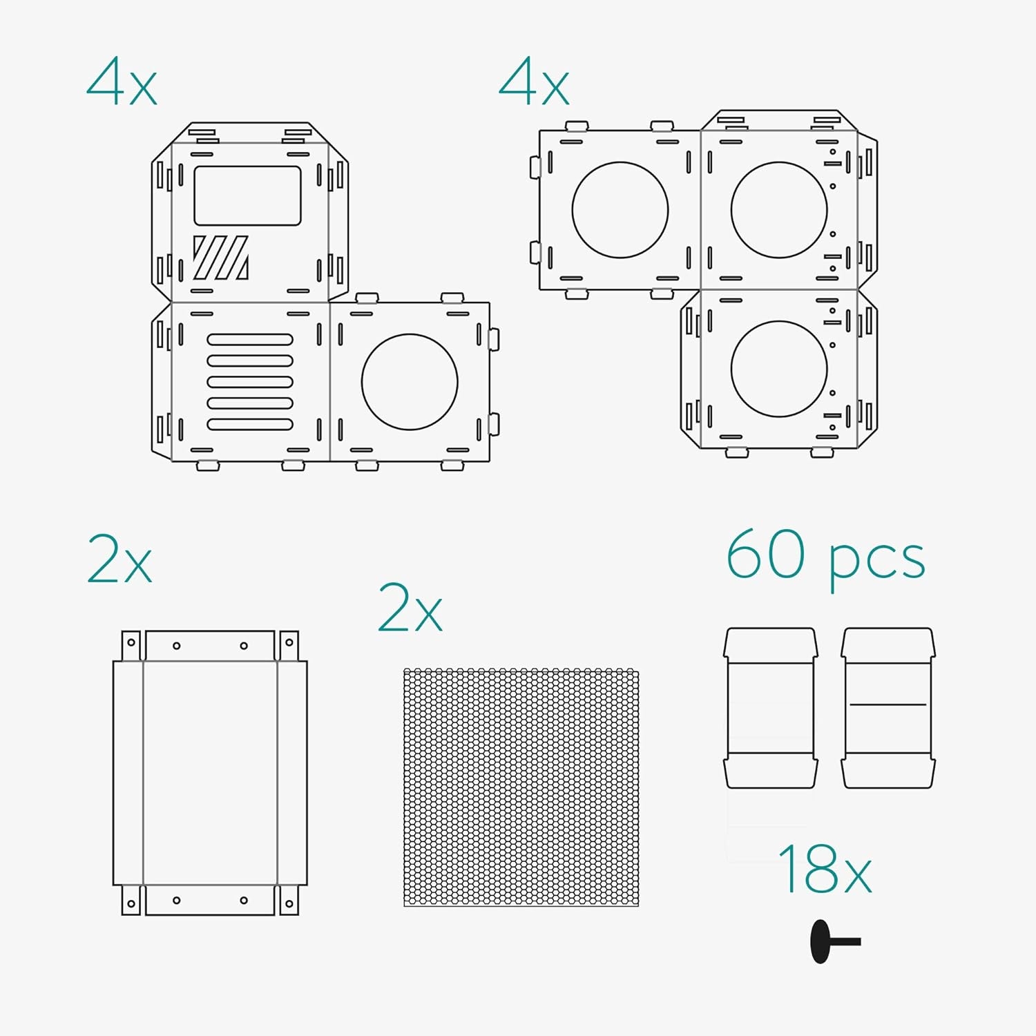 Η συσκευασία περιλαμβάνει: 4 x Κύβοι, 2 x Ονυχροδρόμια, 2 x Γέφυρες, 1 x Σετ σύνδεσης.